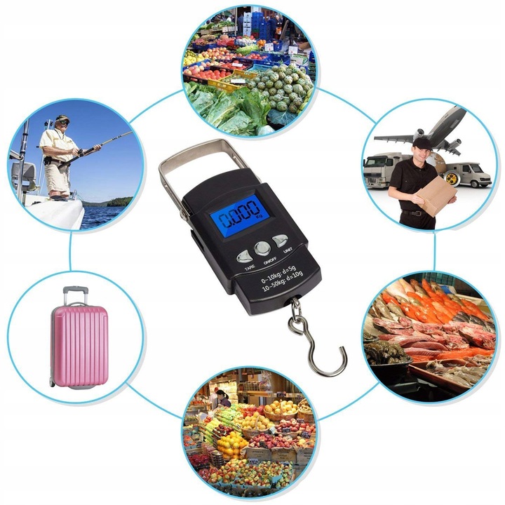 БАГАЖНІ ВАГИ кишенькові дорожні рибальські гачки підвісні ручні LCD 50 кг