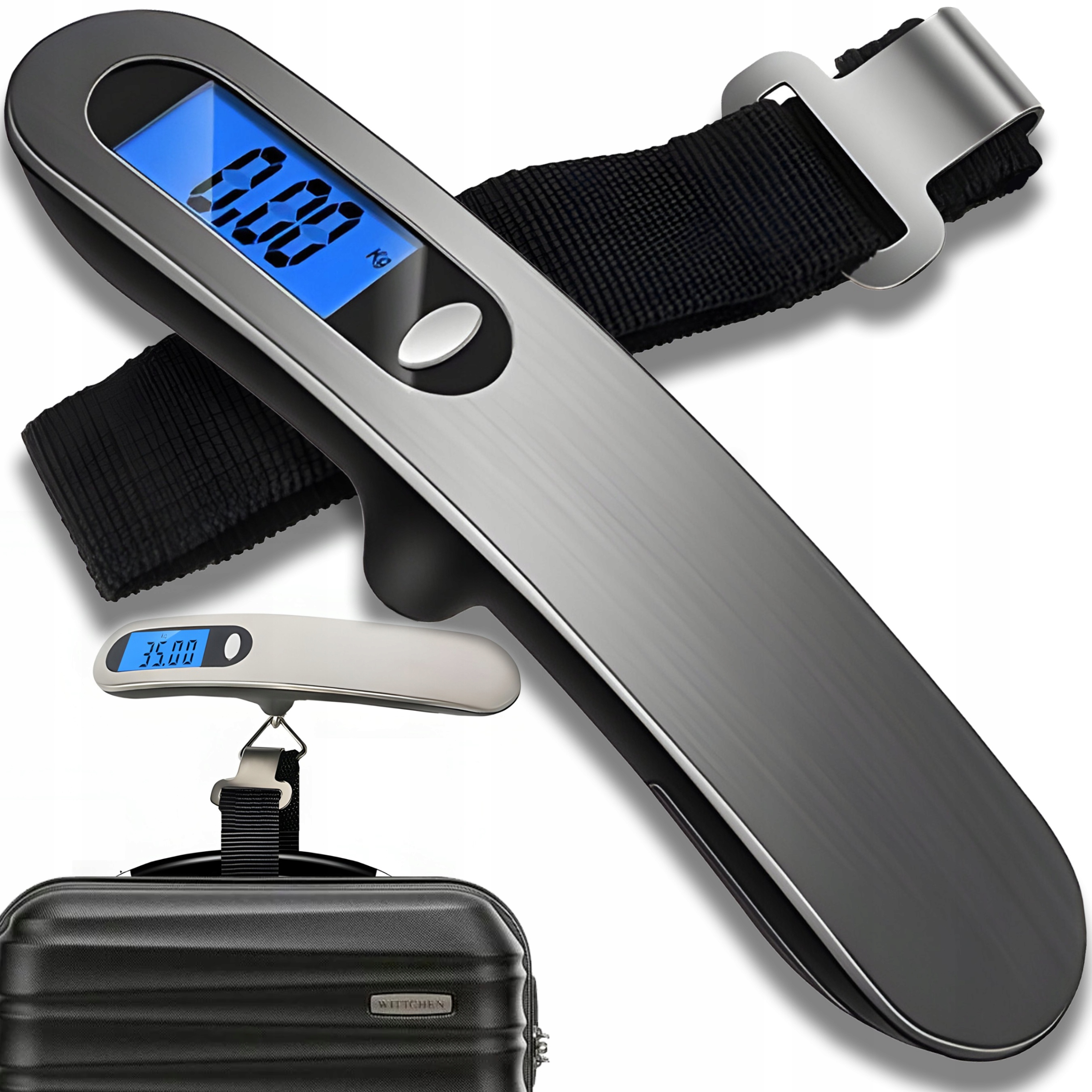 Вес выглядит элегантно, имеет освещенный цифровой дисплей и прочный пластиковый корпус. ремень, на котором мы прикрепляем багаж