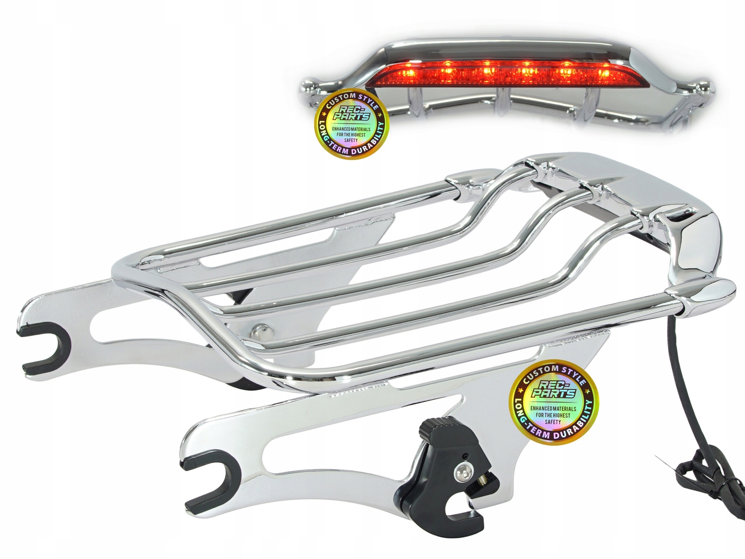 Багажник + задняя светодиодная подсветка + двухместное хромированное крыло STOP для Harley Touring 09-25