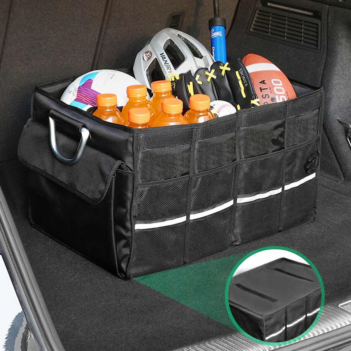 Этот многофункциональный органайзер облегчает транспортировку и хранение различных вещей. С его помощью вы легко сможете поддерживать багажник своего автомобиля в идеальном порядке. При необходимости сумку можно также вынуть и использовать на открытом воздухе, например, во время пикника. Большой объем в 55 литров означает, что вы легко поместите все необходимое во время путешествия - например, еду, сменную одежду, одеяло или аптечку.