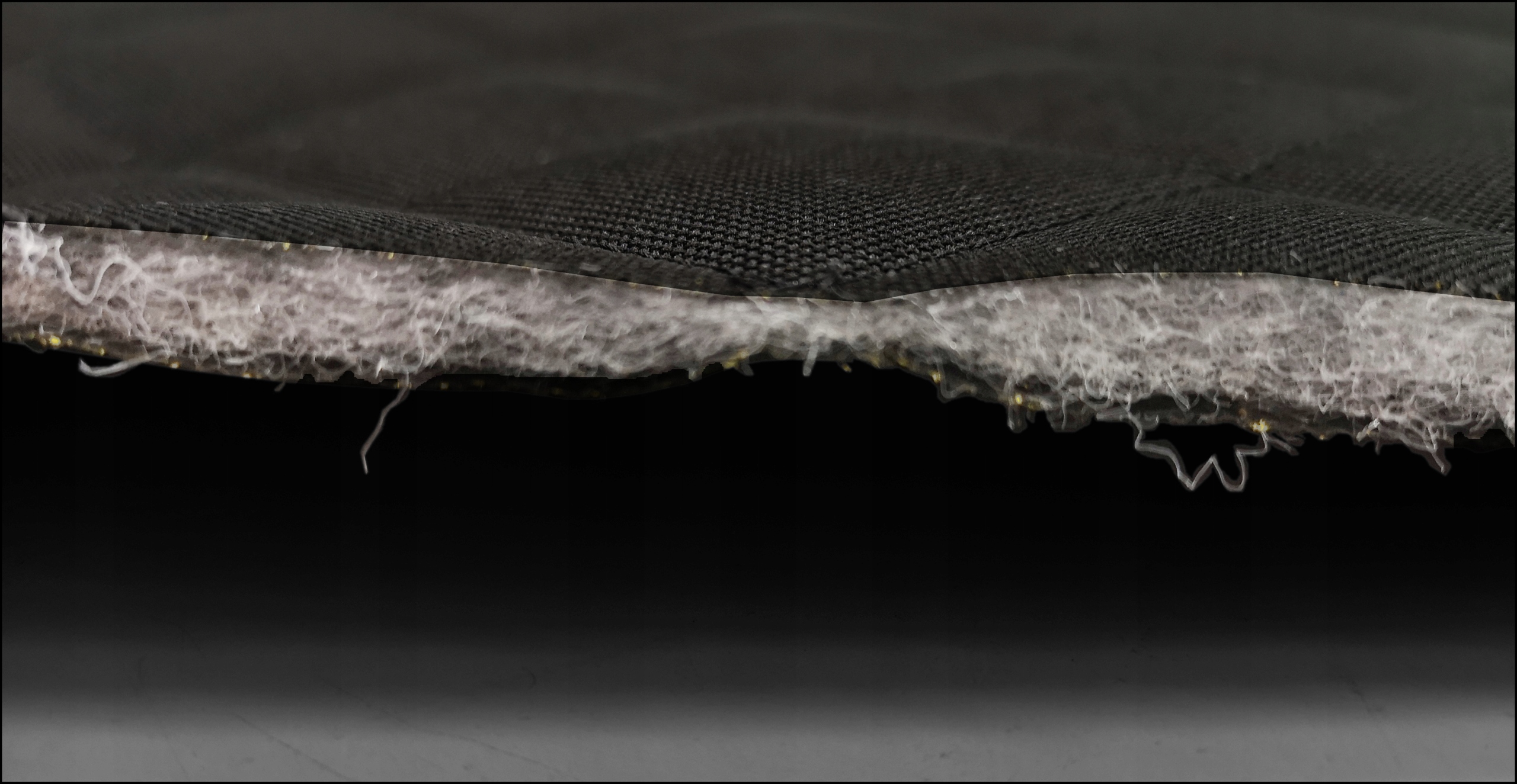 Материал стеганого кодера состоит из трех слоев, постоянно соединенных друг с другом в процессе сшивания нитью.
