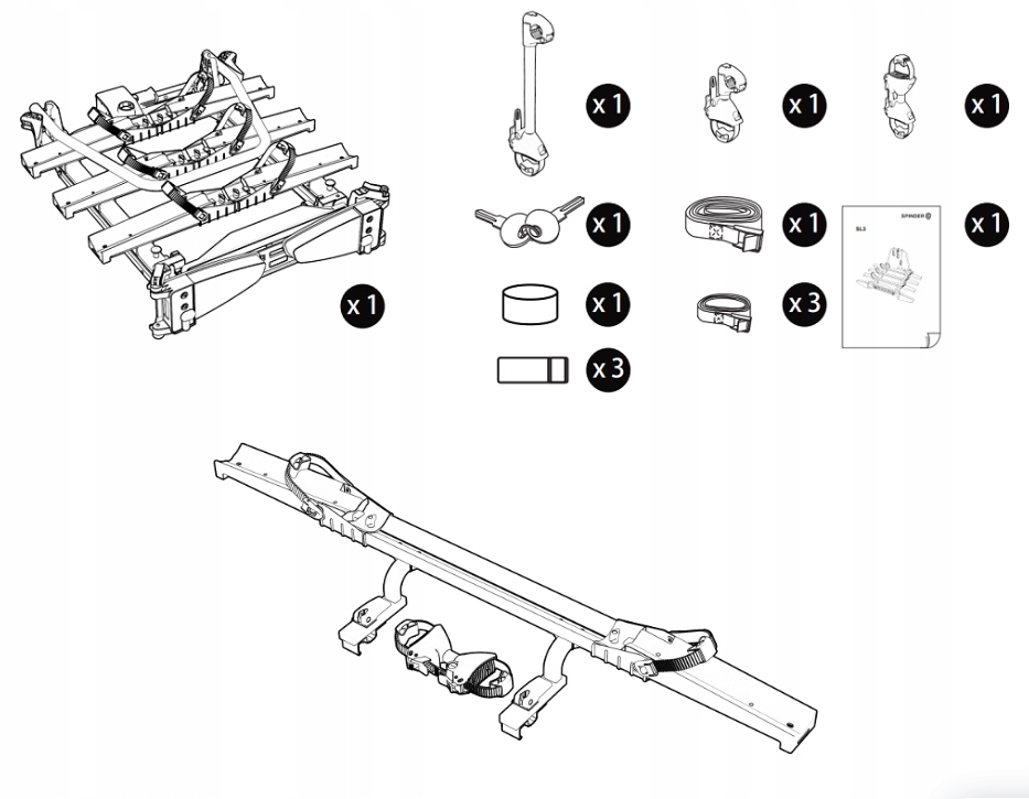 - ТЕХНИЧЕСКИЕ ДАННЫЕ ПРИСОЕДИНЕННОГО ВЕЛОСИПЕДНОГО БАГАЖНИКА SPINDER SL3 + ПЕРЕХОДНИК