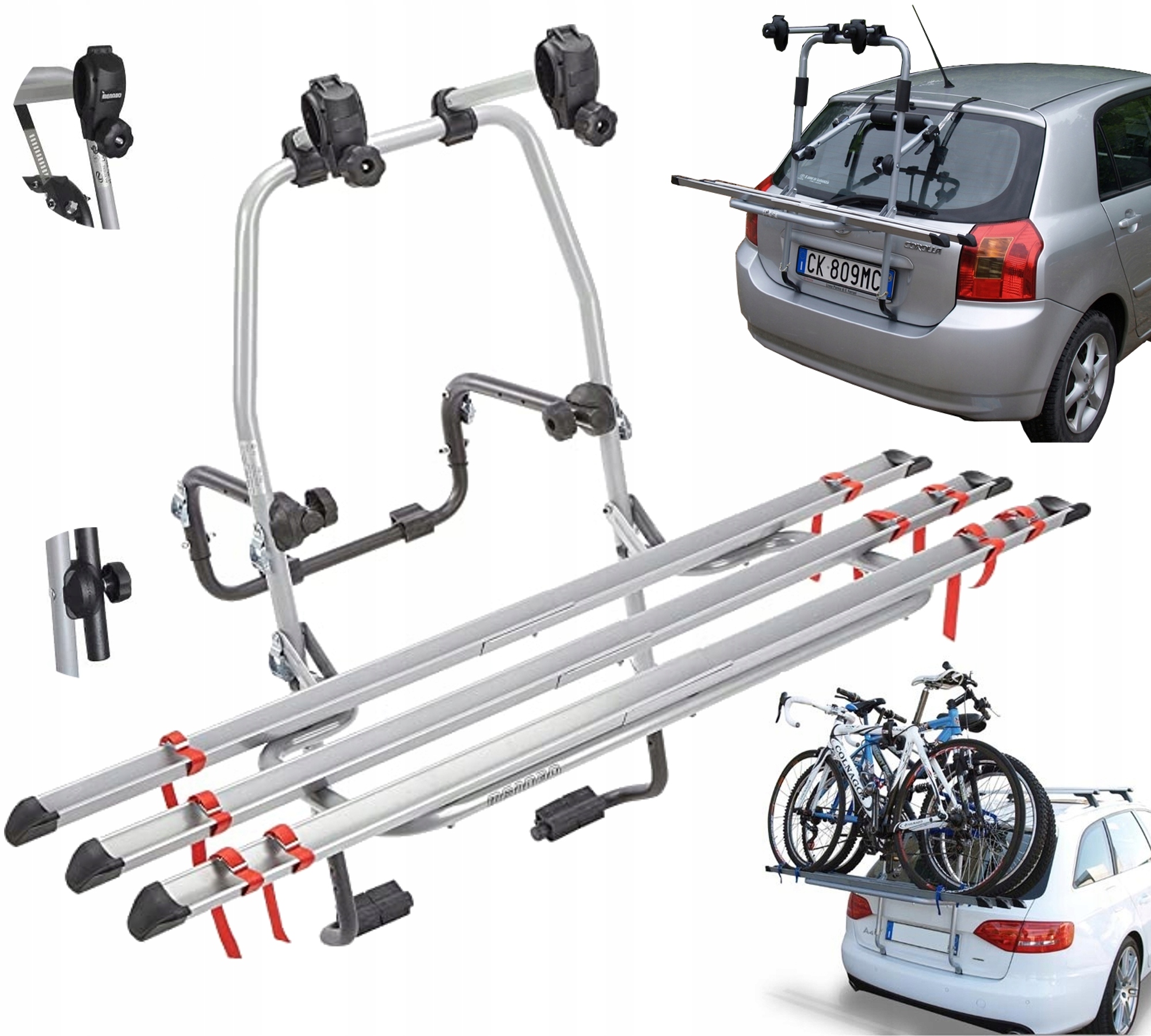 - три алюминиевых полозья, гарантируют безопасную транспортировку любого типа велосипеда.