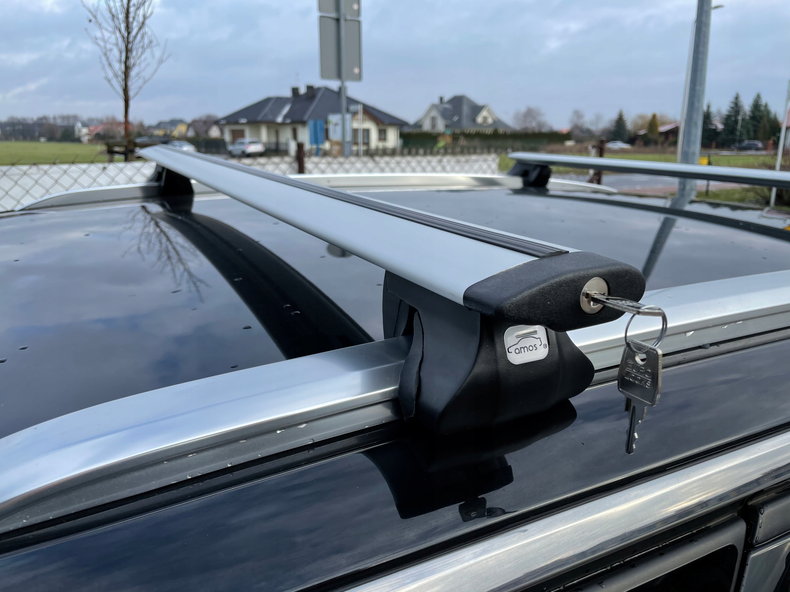 Крепление ALFA подходит как для традиционных, так и для интегрированных перил. В машине на фото встроены рейлинги. Это самый безопасный способ установки от данного производителя, имеющий сертификат TUV и польский сертификат безопасности B.