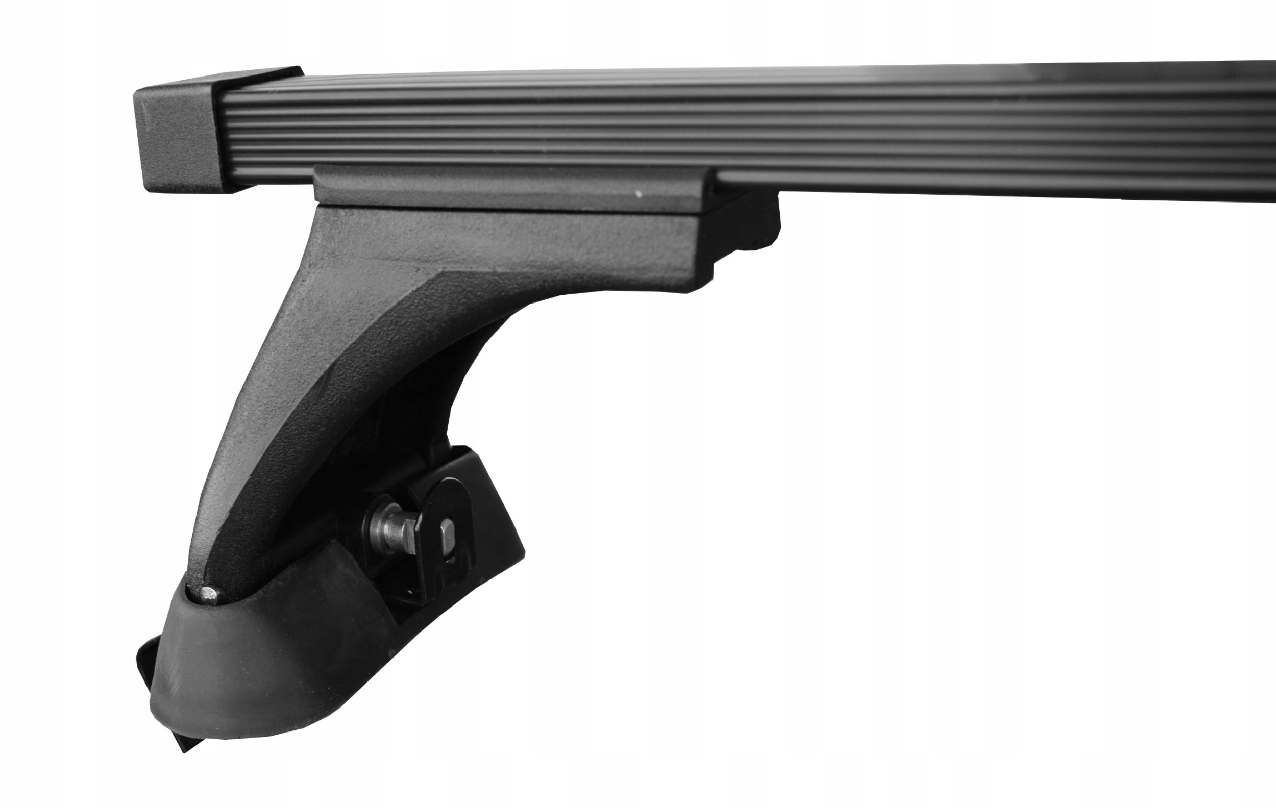 Представленный стойка состоит из прочных монтажных захватов, обеспечивающих надежность крепления к точкам крепления на крыше автомобиля, и двух стальных балок (с черным ПВХ-покрытием) прямоугольного сечения 32х20мм . Весь комплект выполнен в универсальном черном цвете.
