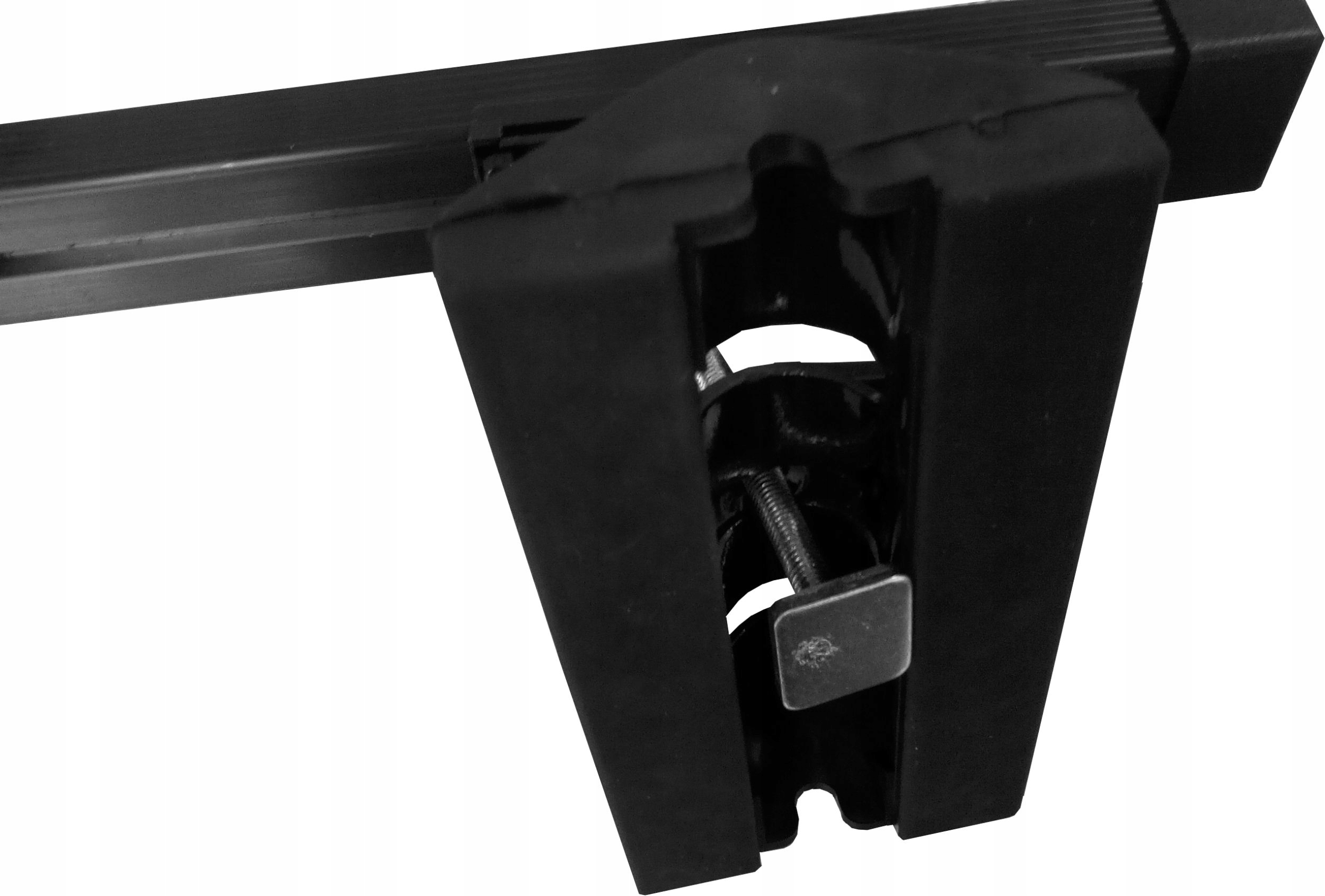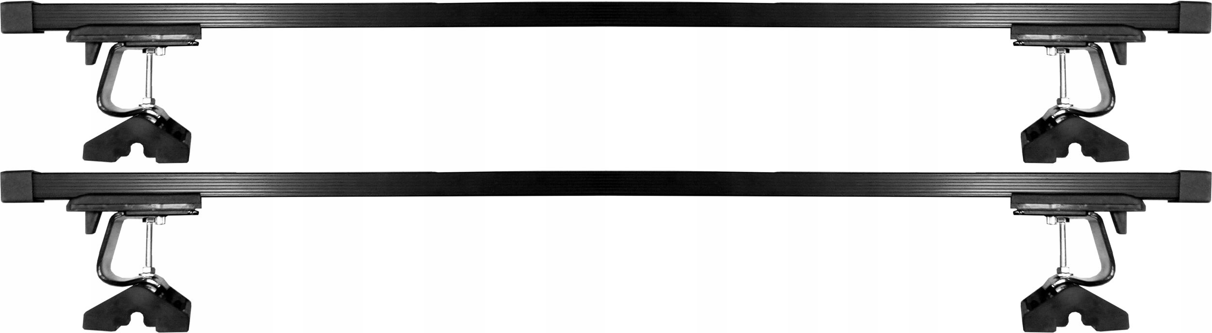 Представленный стойка состоит из прочных монтажных ножек, изготовленных из металла со специальным резиновым покрытием, обеспечивающих надежность крепления к Т-профилю (паз по крыше) автомобиля, и двух стальных балок. (с черным ПВХ-покрытием).) прямоугольного сечения 32х20мм. Весь комплект выполнен в универсальном черном цвете.