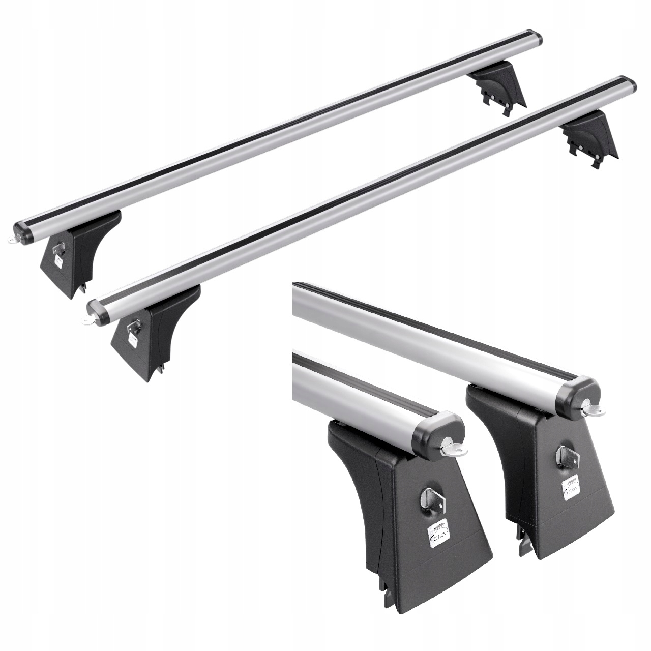 Представленная стойка состоит из прочных монтажных захватов (головка + крышка с замком + сменный комплект), изготовленных из металла и пластика, и двух алюминиевых балок с замками с аэродинамическая форма, обеспечивающая бесшумное использование комплекта (овальное сечение балки 53х30мм). Стойка обеспечивает надежность крепления к точкам крепления на крыше (под пластиковой планкой) автомобиля. Весь комплект выполнен в универсальном черно-серебряном цвете. КОМПЛЕКТЫ, то есть опорные ножки, можно заменить, чтобы адаптировать багажник к другому автомобилю.