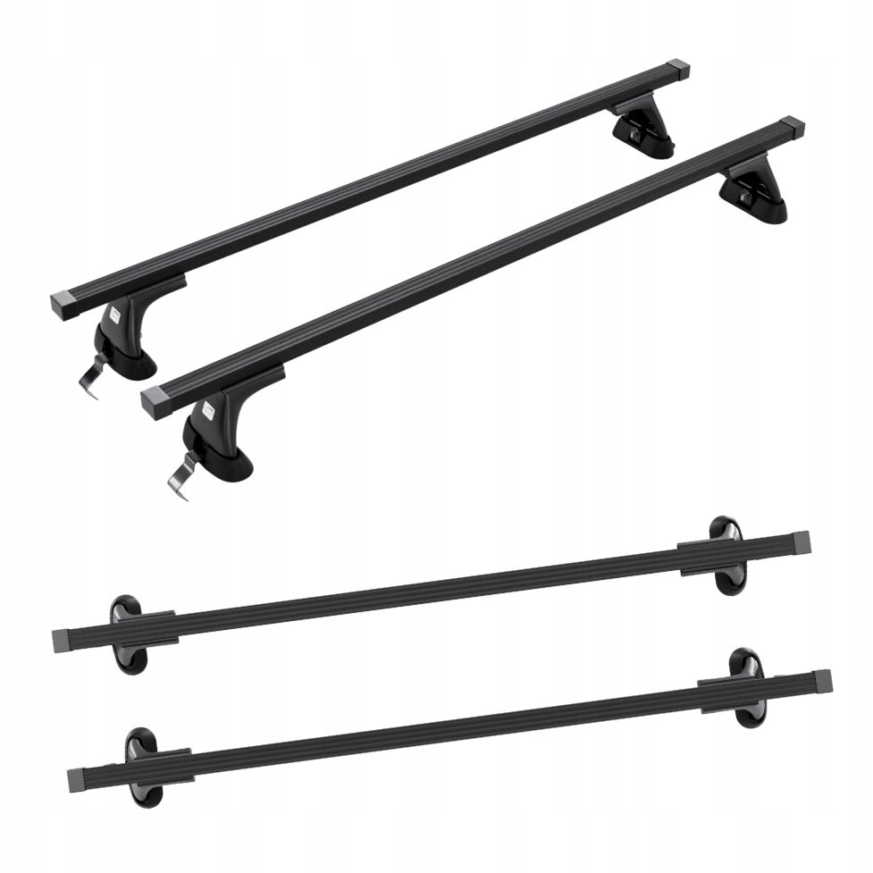 Представленный багажник состоит из жестких монтажных ножек, изготовленных из прочного пластика и резины (ножки) и двух черных стальных балок с ПВХ-изоляцией. с прямоугольным сечением (30х20мм). Стойка обеспечивает надежность крепления к точкам крепления (видны после открытия двери). Весь комплект выполнен в универсальном черном цвете.
