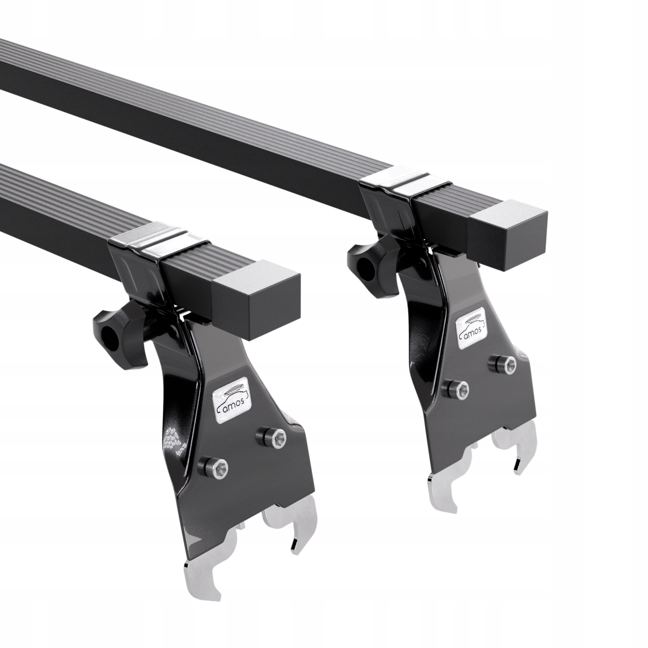 Представленный багажник на крышу состоит из массивных крепежных проушин из металла и пластика и двух стальных балок, покрытых черным ПВХ с прямоугольного сечения (30х20мм). Стойка обеспечивает надежность крепления к точкам крепления на крыше (под пластиковой планкой) автомобиля. Весь комплект выполнен в универсальном черном цвете.