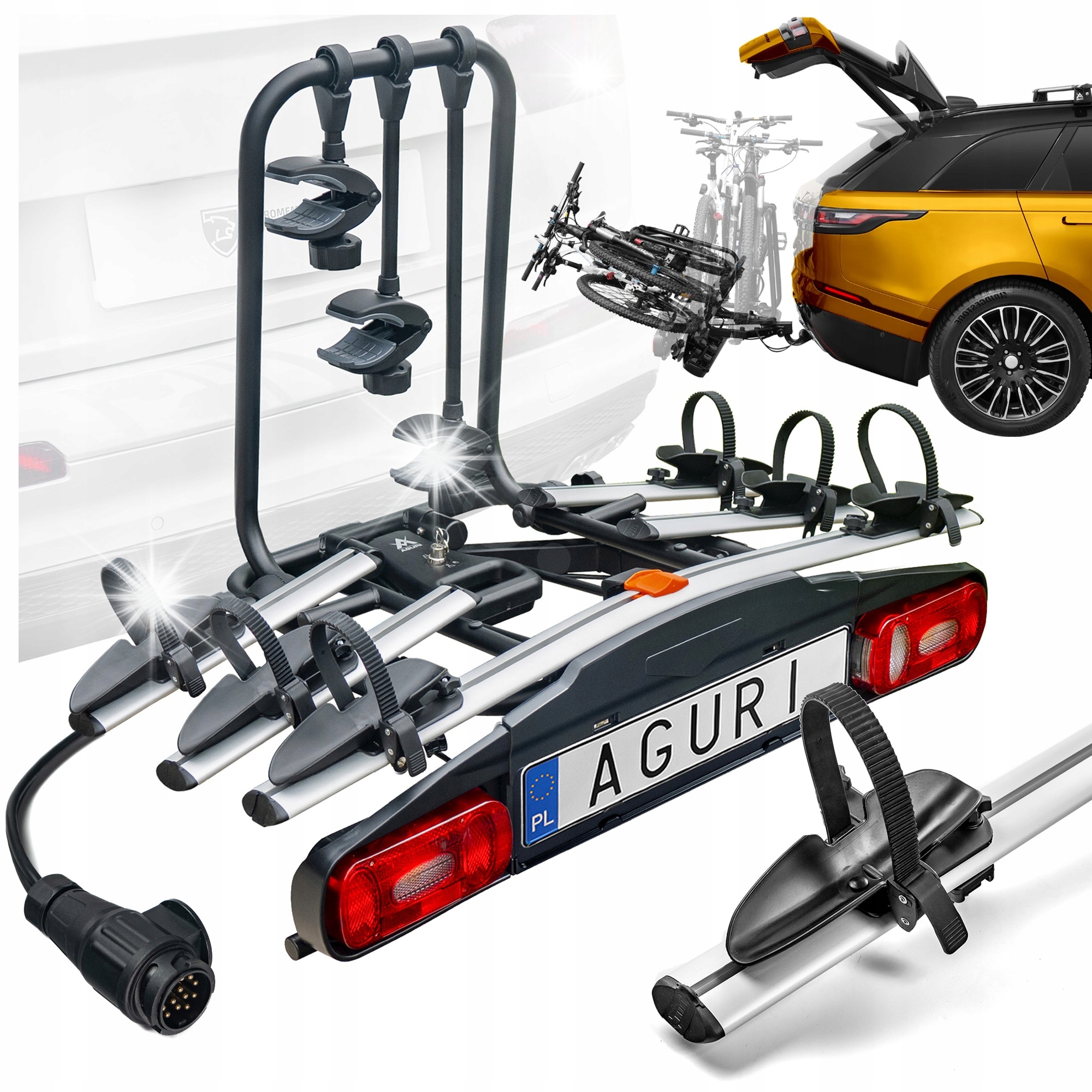 ➡️ Aguri Active Bike ПРИСОЕДИНЕННОЕ ВЕЛОСИПЕДНОЕ крепление, НАКЛОНЯЕМОЕ | 3 велосипеда | 13-PIN