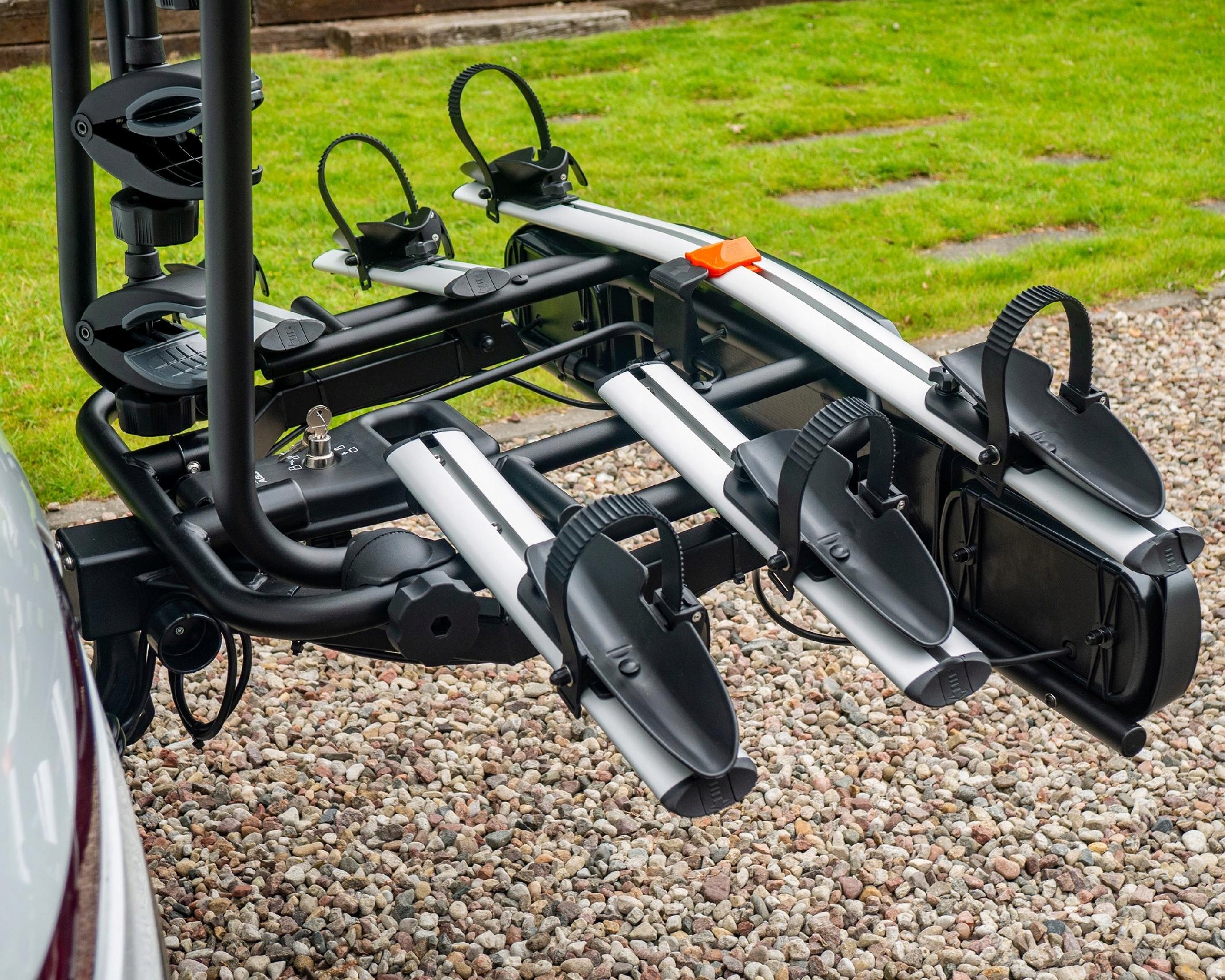 - ✅ Доступ к багажнику: Благодаря функции наклона можно получить доступ к багажнику автомобиля во время движения, даже если велосипеды установлены на платформе.