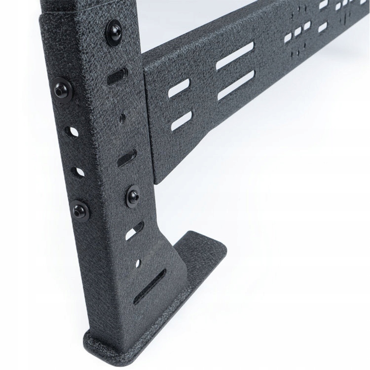 Продукт был изготовлен из стали. Это более устойчиво к ударам, вибрациям, механическим повреждениям и износу. Черная матовая царапина -резистентная структура. ствол прикреплен к 4 столбцам в сторону благодаря богатой опции регулировки вы можете отрегулировать высоту относительно пакетов в соответствии с вашими предпочтениями. То же самое относится и к большинству аксессуаров 4x4. благодаря большому количеству монтажных отверстий ко всей конструкции вы можете прикрепить палатку, светодиодное освещение, ручки оборудования и многие другие.