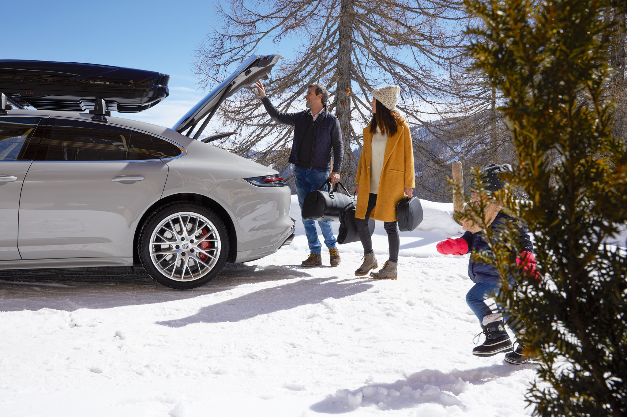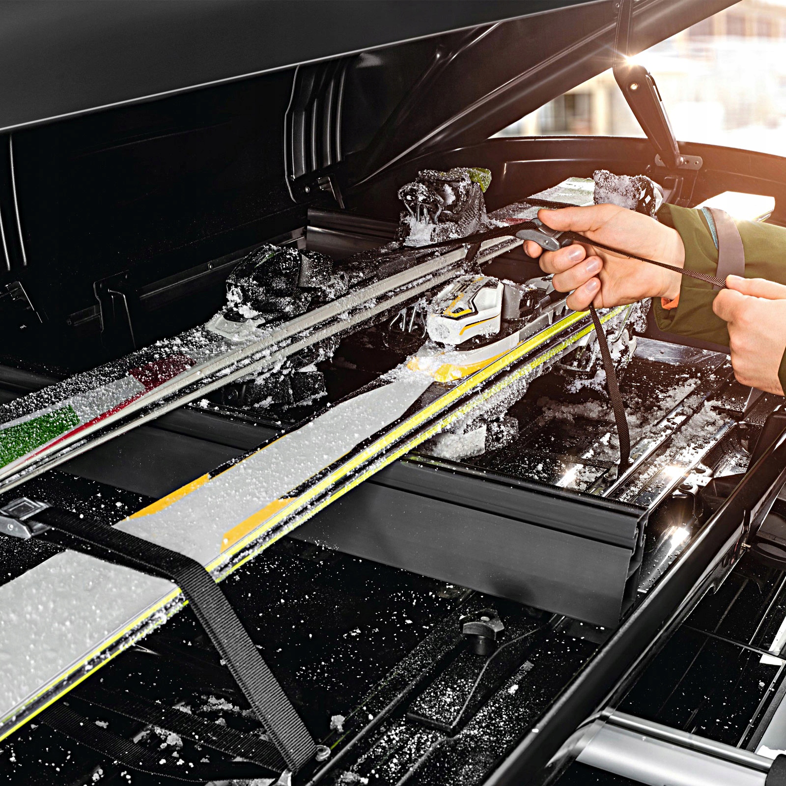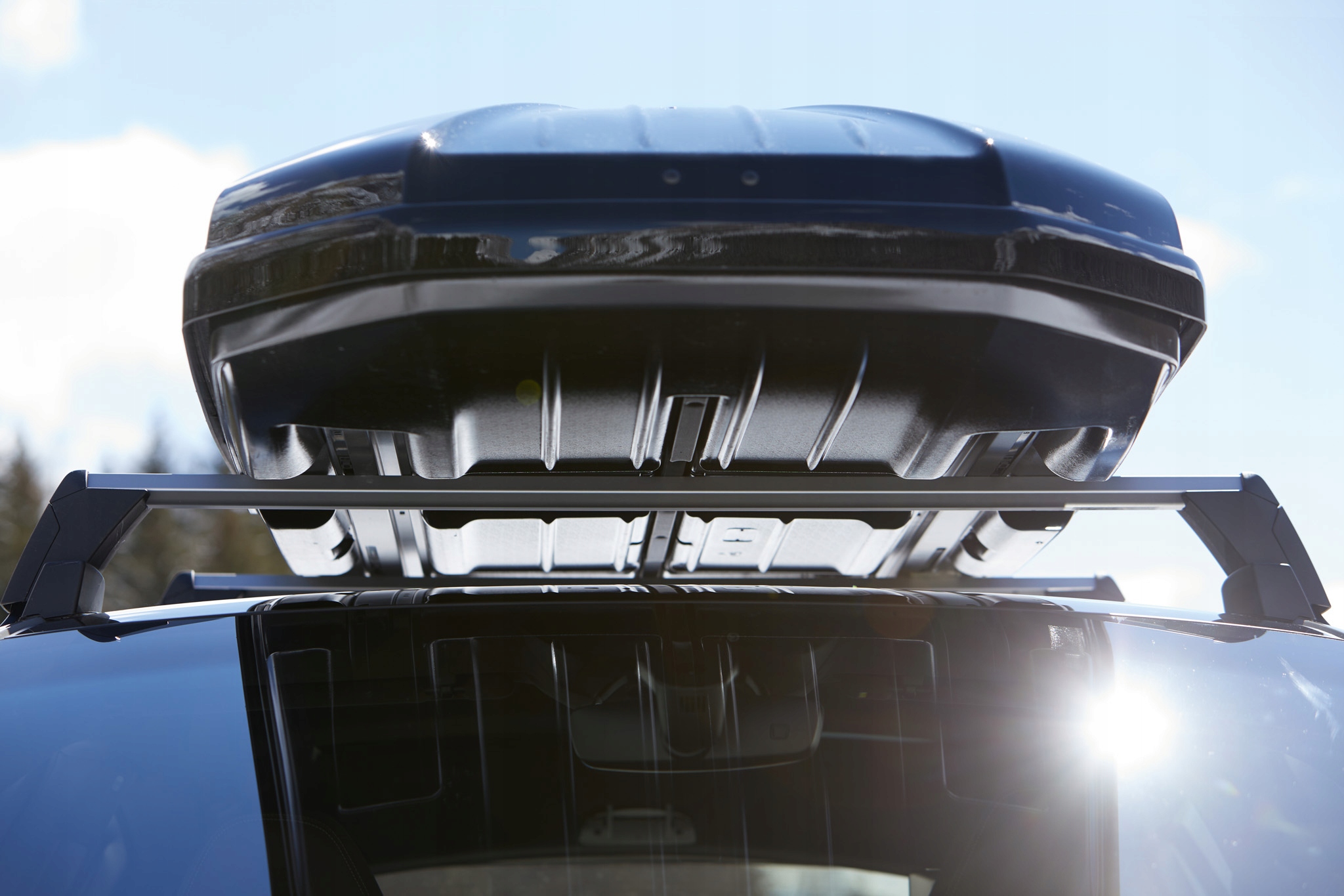 Закрывающийся пластиковый бокс на крышу со встроенным держателем для лыж, емкостью около 520 литров, открывается с обеих сторон. Внешние размеры 2180 x 895 x 400 мм (Д x Ш x В). Только в сочетании с поперечинами системы багажников на крыше.