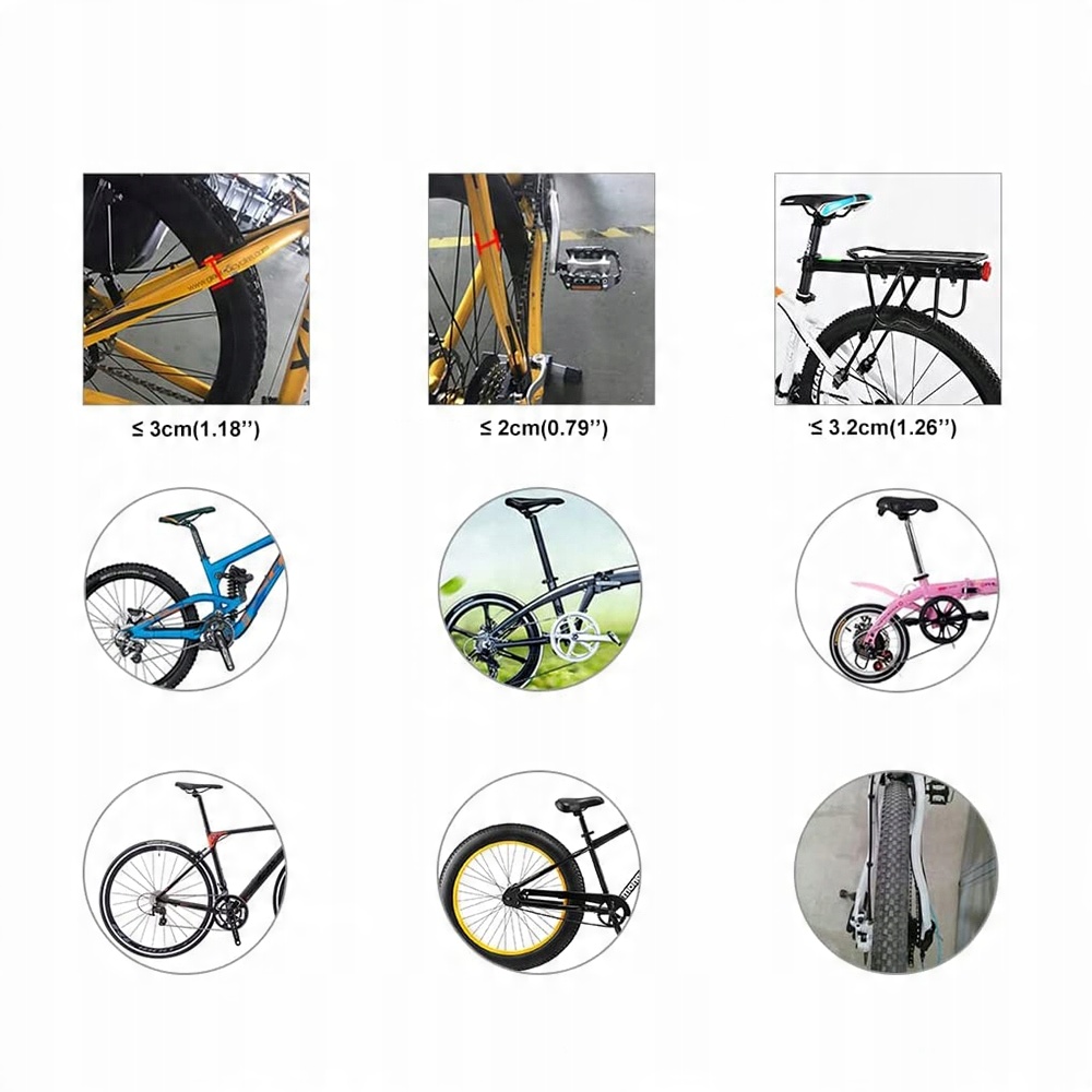 Высококачественное алюминиевое универсальное крепление для велосипедов с максимальной нагрузкой до 50 кг. Крепится устойчиво к подседельным трубам (диаметр трубы 27,2-31,8 мм) и к задней части рамы с помощью быстросъемного механизма (быстрая сборка самой платформы к подседельным трубам) и винт с устойчивой опорой.
