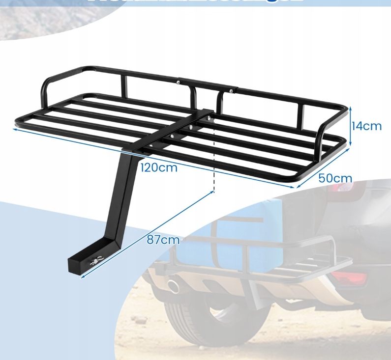 Bagażnik z metalowym zaczepem i nośnością 250 kg 120 x 50 x 14 cm