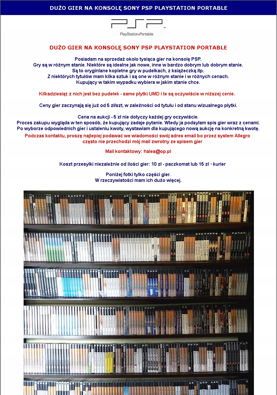 Оплачивая «БАГАТО ІГР ДЛЯ КОНСОЛІ PSP НОВИНКА ВІД 5 зл», вы можете быть уверены, что данное изделие из каталога «Стратегические» будет доставлено из Польши и проверено на целостность. В цене товара, указанной на сайте, учтена доставка из Польши. Внимание!!! Товары для Евросоюза, согласно законодательству стран Евросоюза, могут отличаться упаковкой или наполнением.