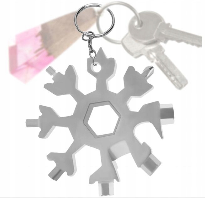 - Малый размер и вес – многофункциональный ключ имеет компактные размеры и вес, а также уникальную форму снежинки. дизайн, позволяющий удобно носить его с собой.