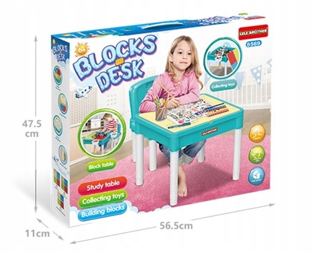 Столешница двусторонняя: с одной стороны гладкая – для рисования, письма и росписи; а другая сторона - разработана так, чтобы подходить ко всем ведущим брендам строительных блоков, что позволяет ребенку максимально эффективно использовать этот многофункциональный стол (блоки не входят в комплект поставки вместе со столешницей)