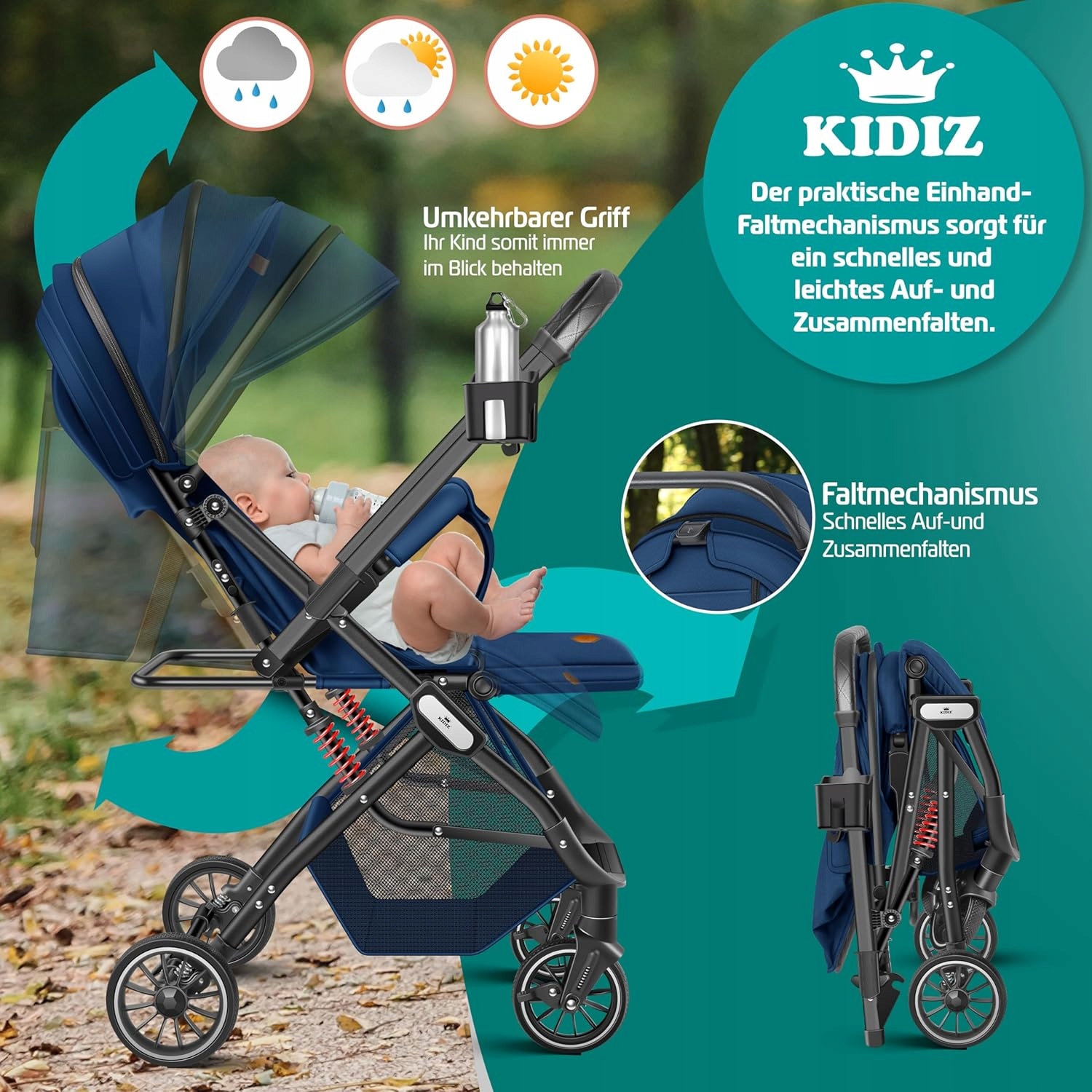 - ➡️ Независимо от погоды, ваш ребенок защищен. Входящий в комплект брезент и солнцезащитный козырек обеспечивают надежную защиту от дождя, ветра и солнца, поэтому ваш ребенок остается сухим, теплым и безопасным, пока он исследует мир.