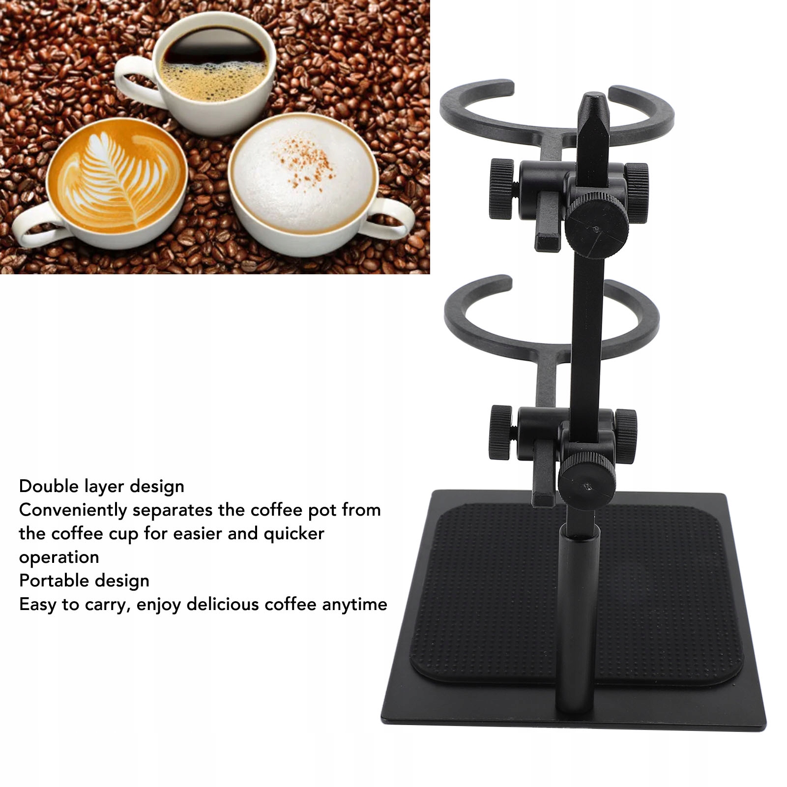 1. ДВУХСЛОЙНАЯ КОНСТРУКЦИЯ: подставка для капель кофе имеет двухслойную конструкцию, которая позволяет удобно отделять кофейник от кофейных чашек, а также упрощает и ускоряет работу.