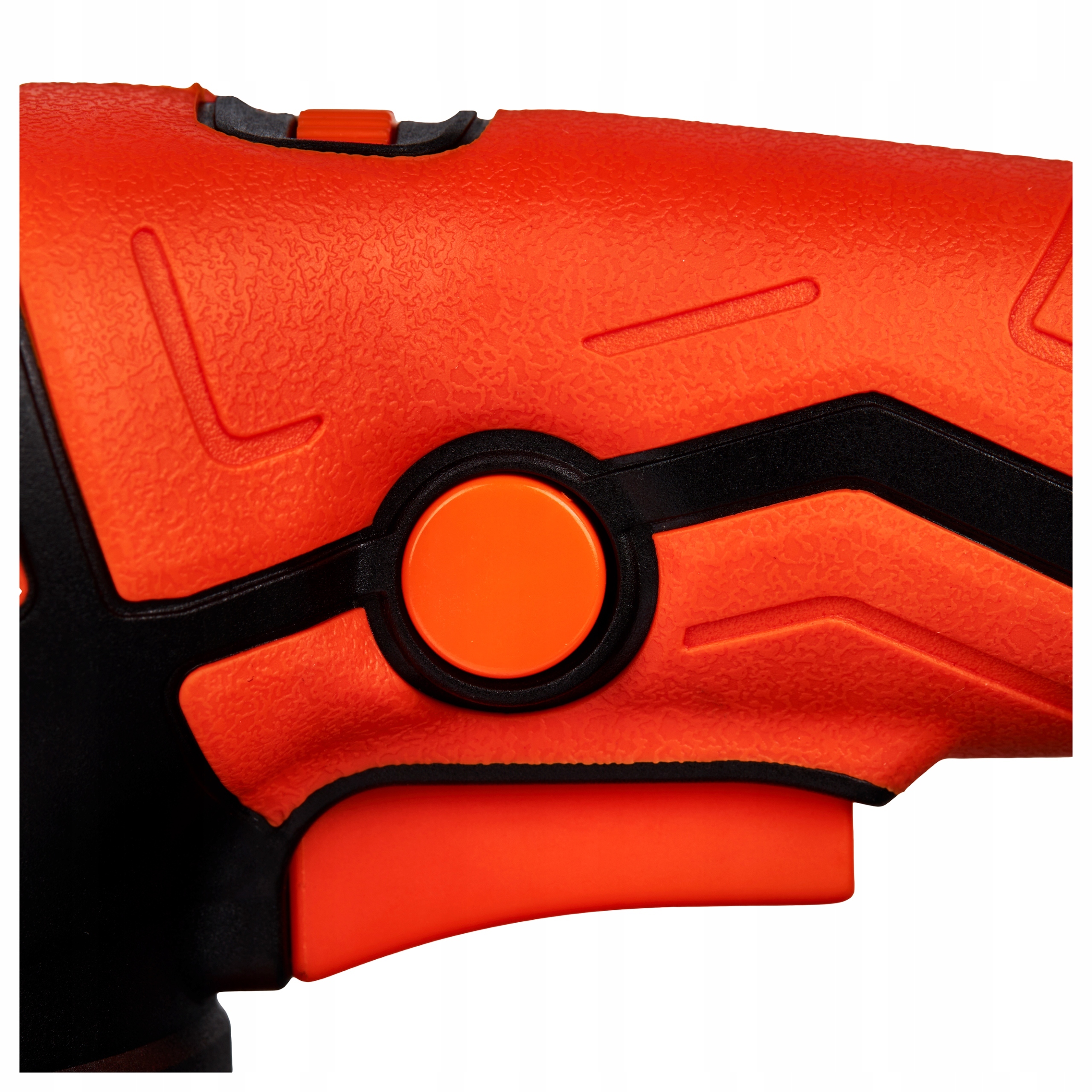 корпус имеет хорошо -мышующую форму и низкий вес , поэтому использование оборудования удобно. Практическая, покрытая не -скользящей пластиковой ручкой означает, что устройство, вероятно, находится в руке , а длинная работа не устанавливает . Расположенный спереди, большой переключатель вызывает интуитивно понятный контроль, а возможность регулировки скорости 6 градусов позволяет настроить скорость к выполняемым задачам.