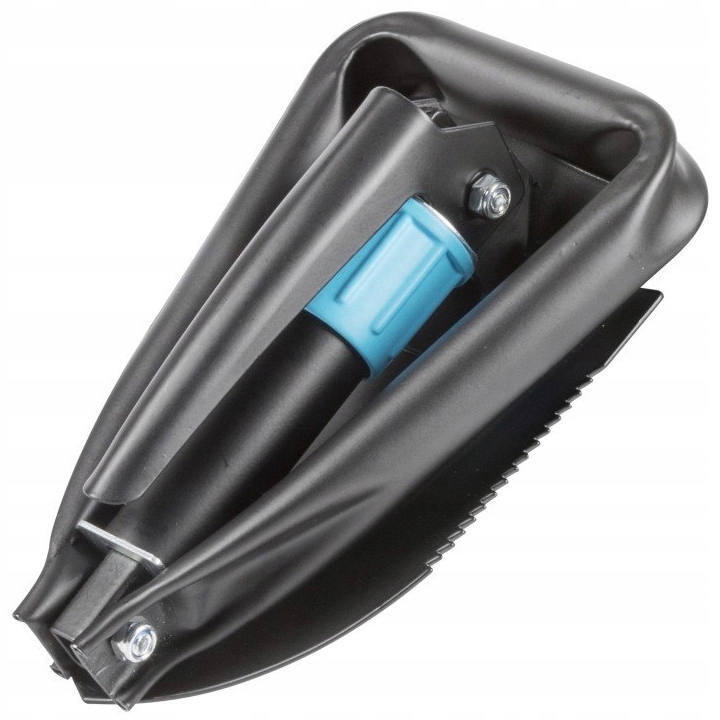 Лопата изготовлена из прочной инструментальной стали, острие лопаты облегчает ее втыкание в землю. Лопату также можно использовать как мотыгу, кирку или пилу, ручка позволяет захватывать инструмент несколькими способами. Имеет чехол для транспортировки, а благодаря складной конструкции он не займет много места.