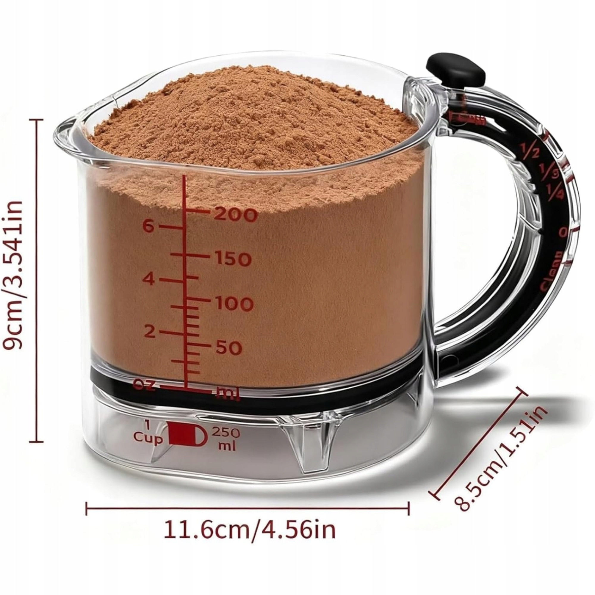 - 【Четкие и долговечные измерения】Многофункциональный мерный стакан оснащен измерениями в двух миллилитрах и жидких унциях, напечатан ярко-красным цветом и тиснением, обеспечивающим длительную видимость, что помогает вам всегда точно измерять.