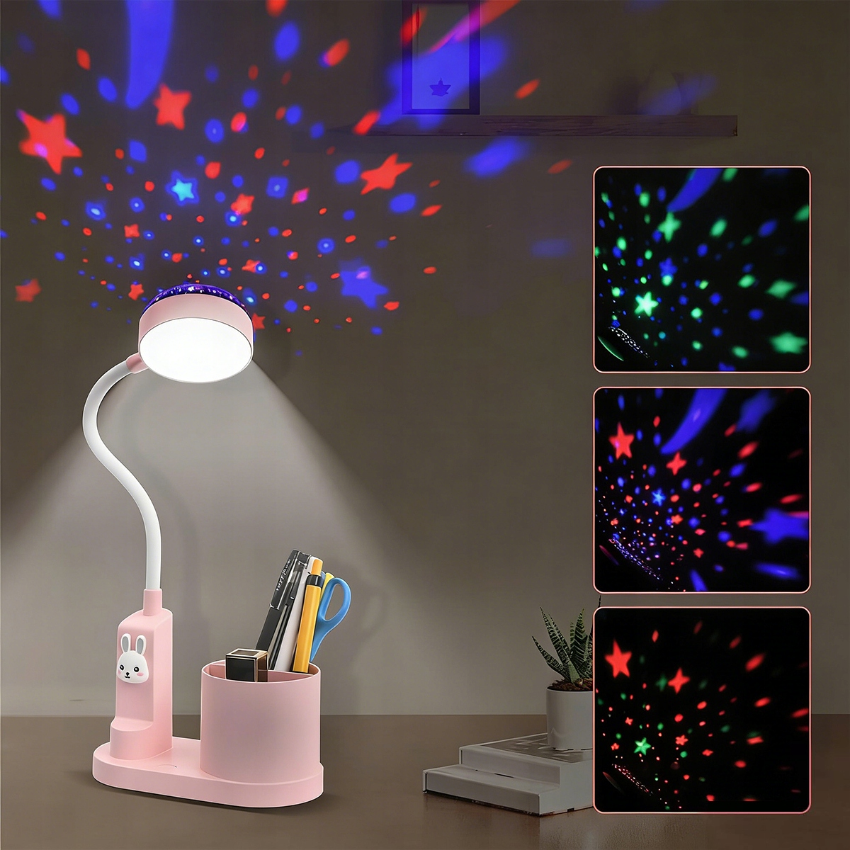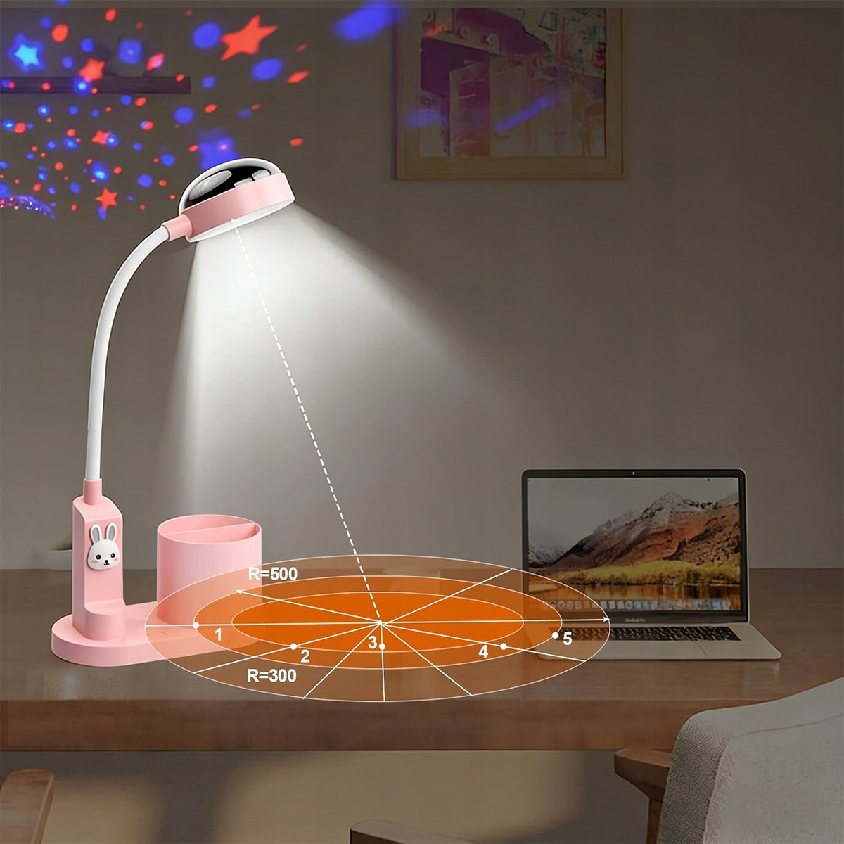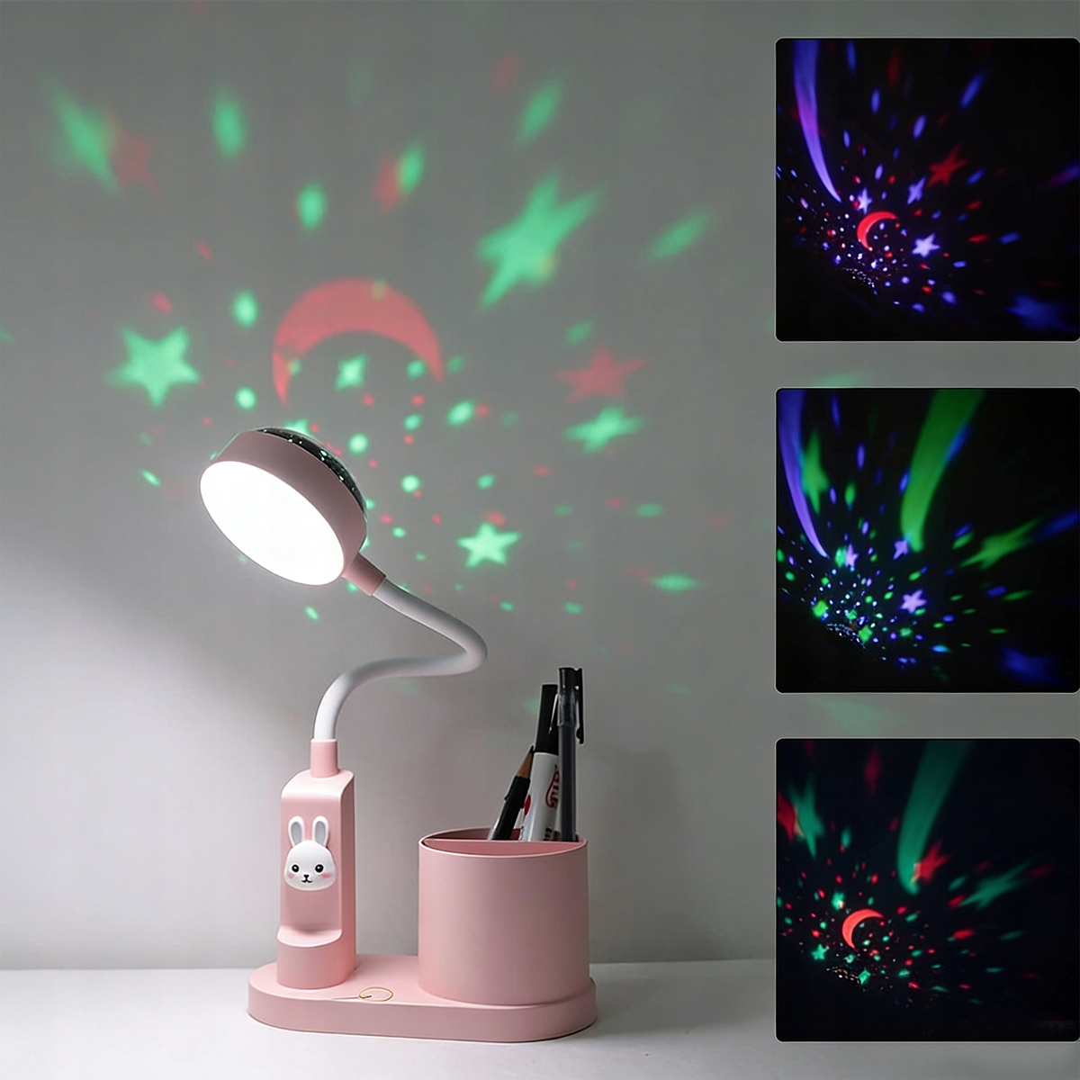 Эта настольная лампа для детей 3-в-1 сочетает в себе функции настольной лампы, проектора и подставки для ручек. Он не только защищает глаза детей, но и обеспечивает достаточно места для ручек, ластиков и других письменных принадлежностей, помогая поддерживать порядок на столе. Включите функцию проецирования и учитесь под звездным небом.