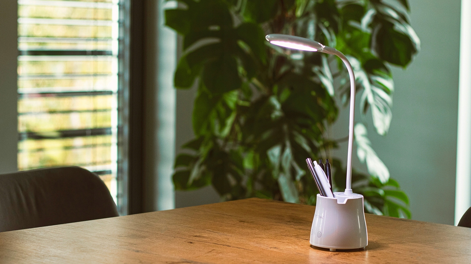 Благодаря специально разработанной конструкции лампа имеет множество функций, таких как: держатель для телефона, держатель для ручек, ночник и основной светильник.