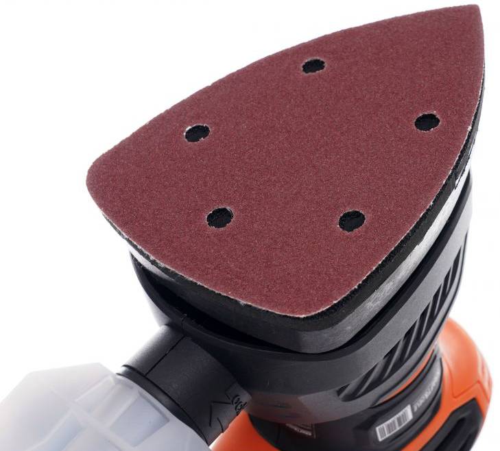 Для лучшего удаления пыли в устройстве используются наждачные бумаги с отверстиями, что является гораздо лучшим решением, чем только краевой выброс.