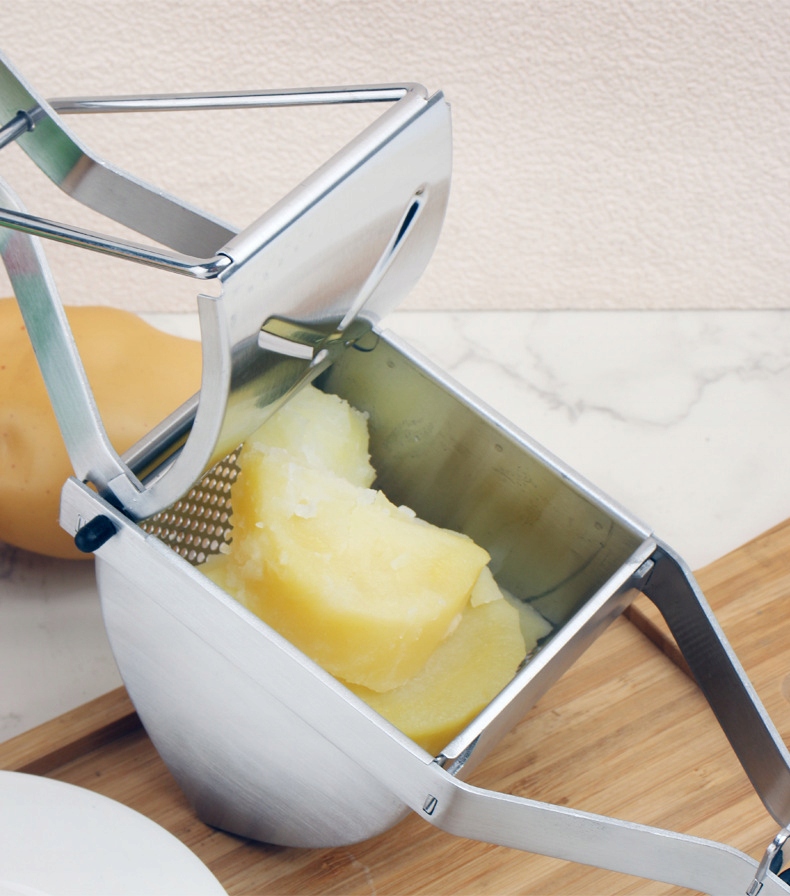▶Картофеледавка из нержавеющей стали незаменима инструмент на каждой кухне. Изготовлен из высококачественной нержавеющей стали, он чрезвычайно прочен и устойчив к повреждениям. Благодаря прочной конструкции и эргономичной ручке пресс быстро и легко измельчает картофель, овощи и другие ингредиенты, обеспечивая идеально гладкую консистенцию.