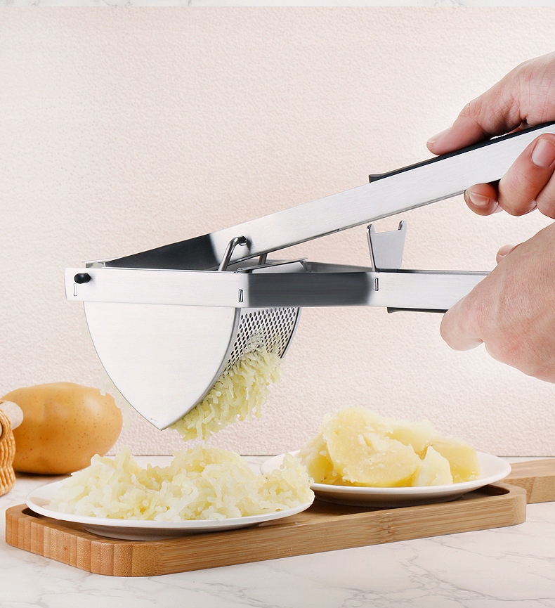 ▶Пресс имеет удобную резиновую ручку, обеспечивающую надежный захват во время использования и не травмирующую руки, а благодаря компактным размерам его легко хранить. Поверхность из нержавеющей стали легко чистится, поэтому пресс можно использовать повторно после каждого использования. Идеально подходит для приготовления классических пюре, ньокки или в качестве дополнения к другим блюдам, требующим замеса теста.