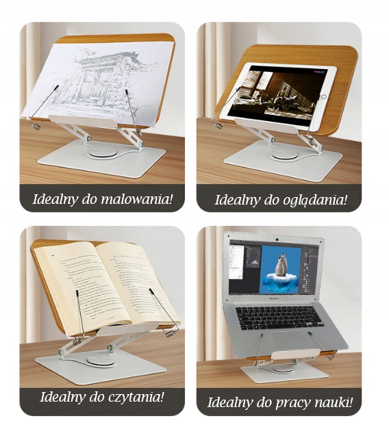 - Ротарий 360 °: позволяет свободно вращать стойку на 360 °, что обеспечивает удобный доступ к материалам для чтения с разных сторон и позволяет легко изменить угла длительного показания, уменьшая натяжение в шее и спине.