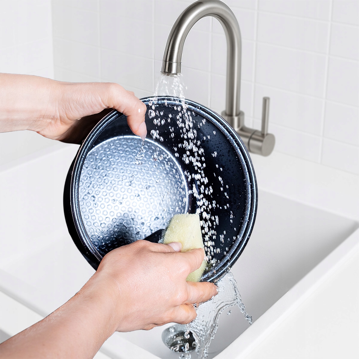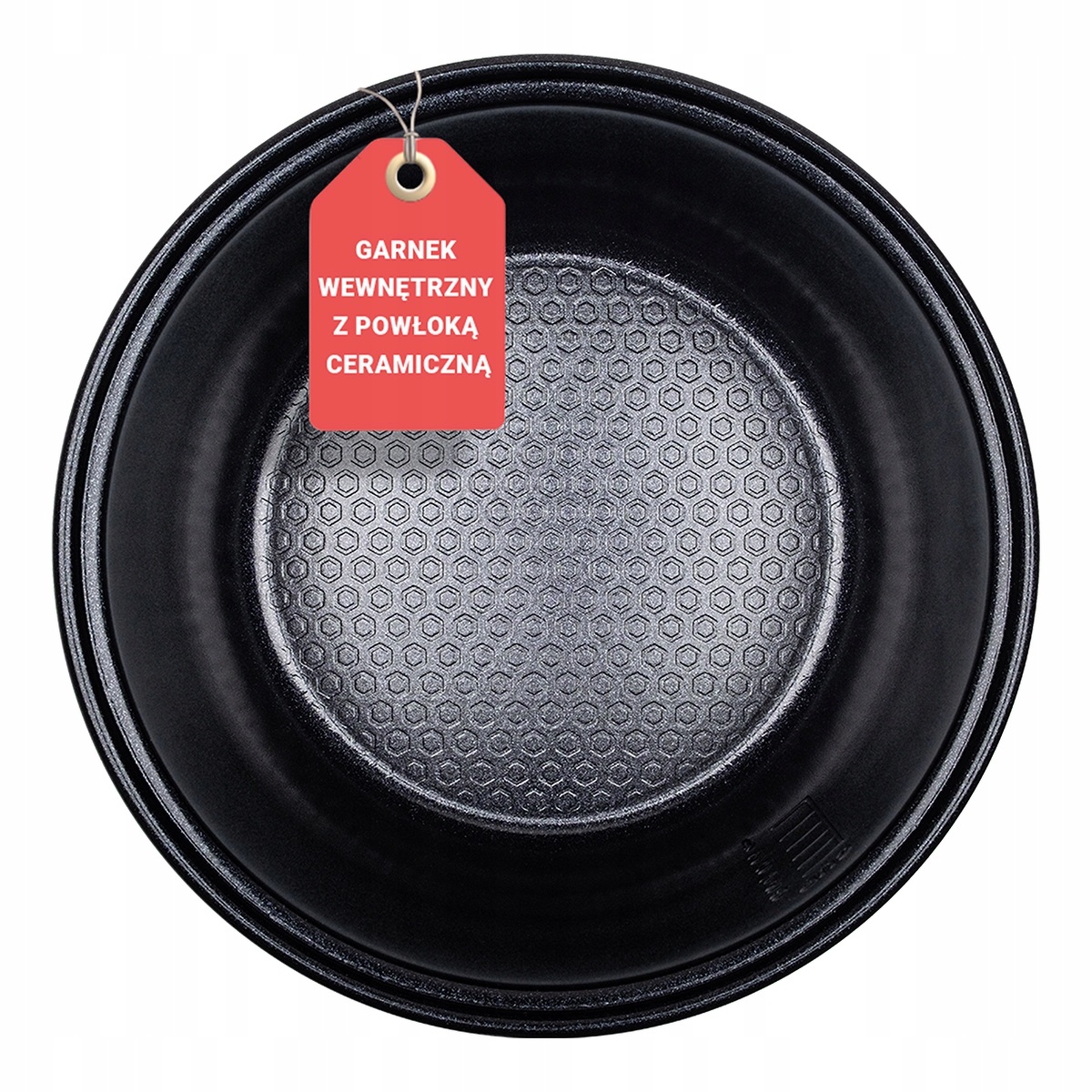 Внутренняя чаша покрыта высококачественным керамическим покрытием с антипригарным покрытием. Благодаря этому посуда не пригорает, а очистка посуды занимает всего мгновение.