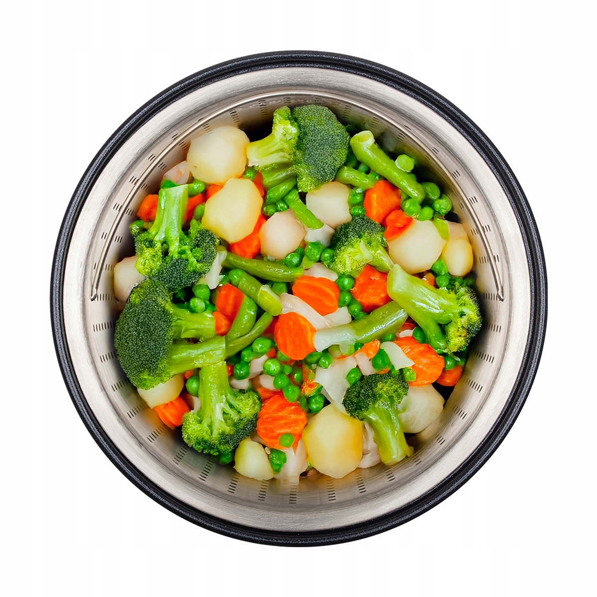 Стальная пароварка позволит приготовить легкие, полезные блюда без жира, сохранив максимум витаминов и минералов. Функция медленного приготовления гарантирует, что мясо и овощи будут сочными, ароматными и насыщенными вкусом.