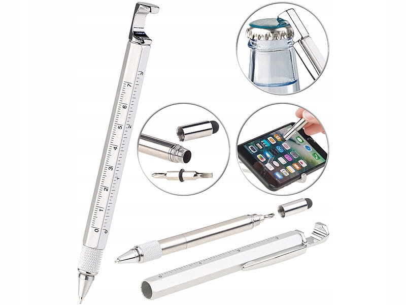 Плоская отвертка, крестовая отвертка, линейка, ручка, подставка для телефона, открывалка для бутылок и стилус для сенсорного экрана. Замените все эти вещи одним продуктом – чрезвычайно практичной ручкой со множеством полезных функций. Использовав однажды, вы никогда не вернете его!