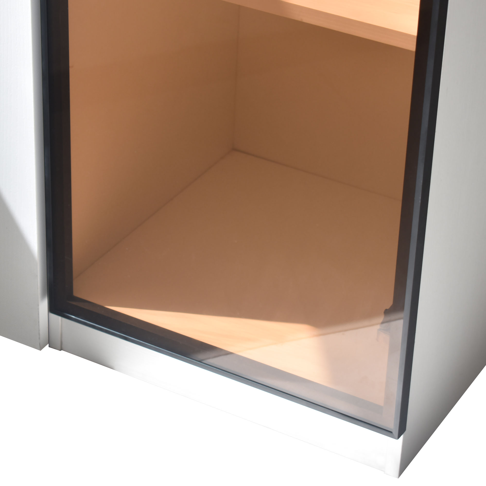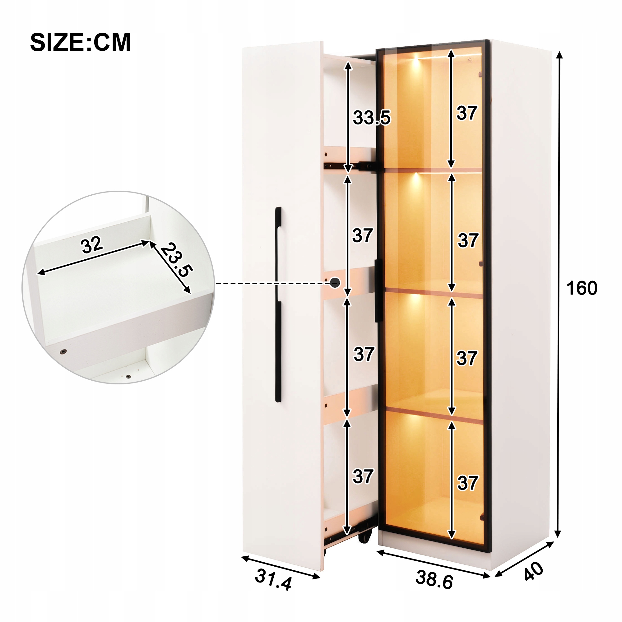Шкаф многофункциональный, высота 160 см - полка и витрина с дверцами из закаленного стекла, алюминиевая дверная коробка, 1 дверца, 1 боковой ящик, на колесиках и светодиодной подсветкой - витрина, шкаф для столовой