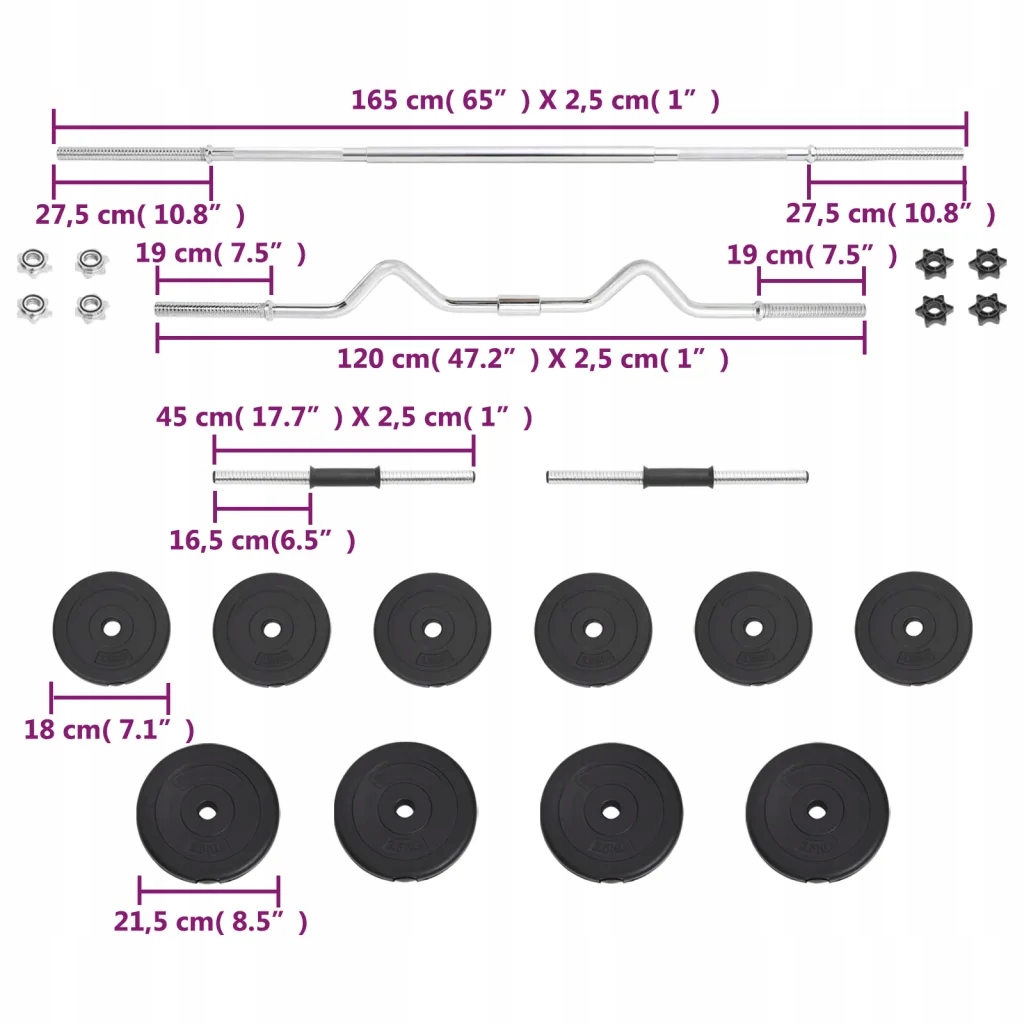 - Размеры прямой штанги: 2,5 х 165 см (диаметр х длина)