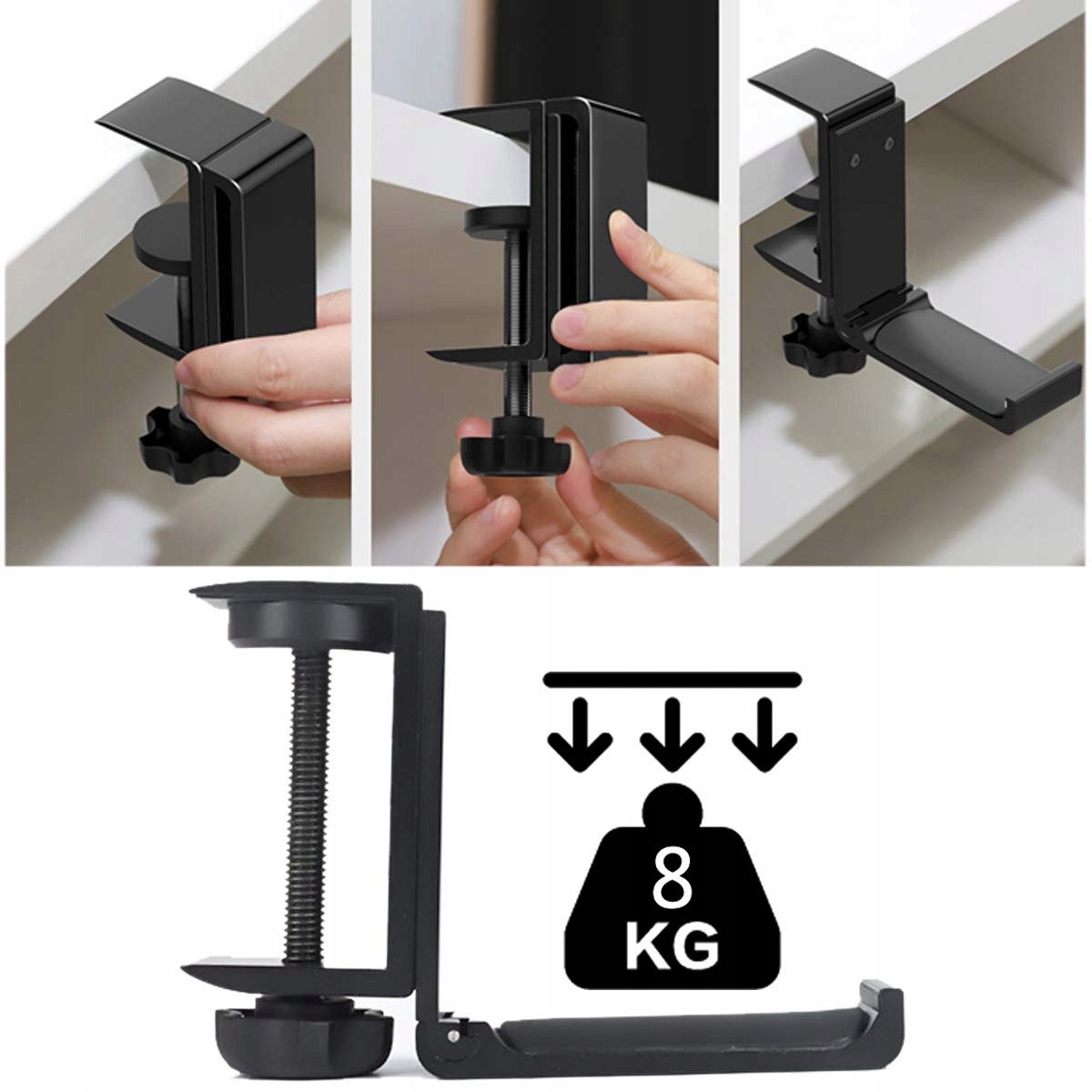 БАГАТОФУНКЦІОНАЛЬНА СКЛАДНА ПІДСТАВКА ДЛЯ НАВУШНИКІВ ПРИГРУНЧЕНА ДО СТОЛУ, ЧОРНА