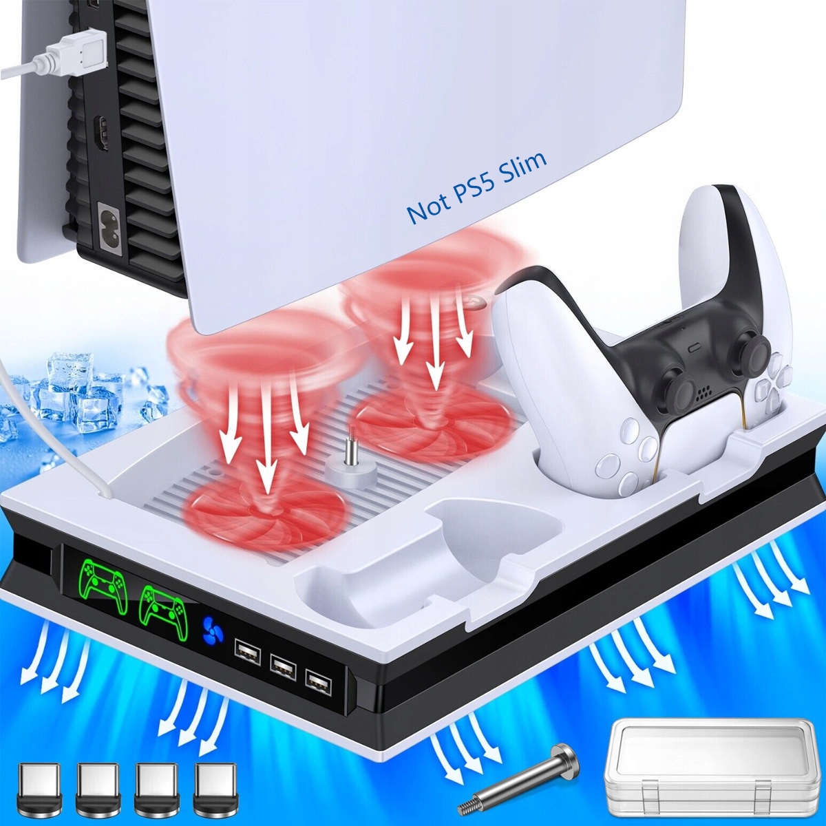 вертикальная стойка для охлаждающего зарядного устройства PS5 Многофункциональная станция светодиодного охлаждения USB с контроллером с двойной зарядкой, для PS5 UHD/ Digital Edition (не для PS5 Slim) H1>