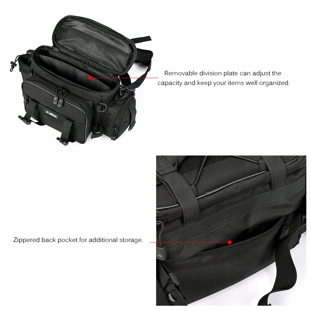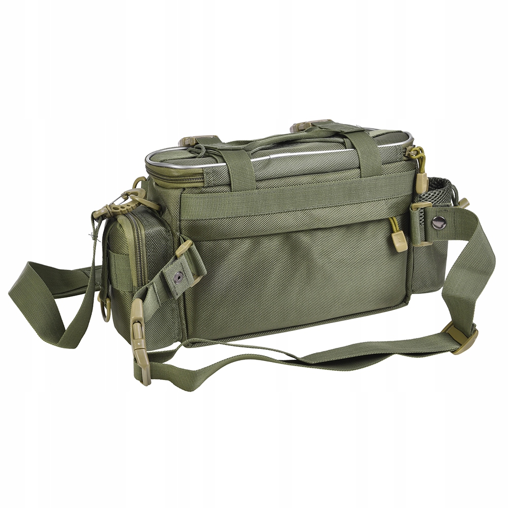 - Эта рыболовная сумка специально разработана для рыбаков. Включает в себя просторное основное отделение и несколько внешних карманов, достаточно просторных, чтобы вместить стандартные рыболовные снасти, и готовых к любой рыбалке. Двойная застежка-молния позволяет быстро и быстро достать предметы. Он идеально подходит для хранения рыболовных приманок, катушек, шин, коробок, ключей, бумажника и других аксессуаров.