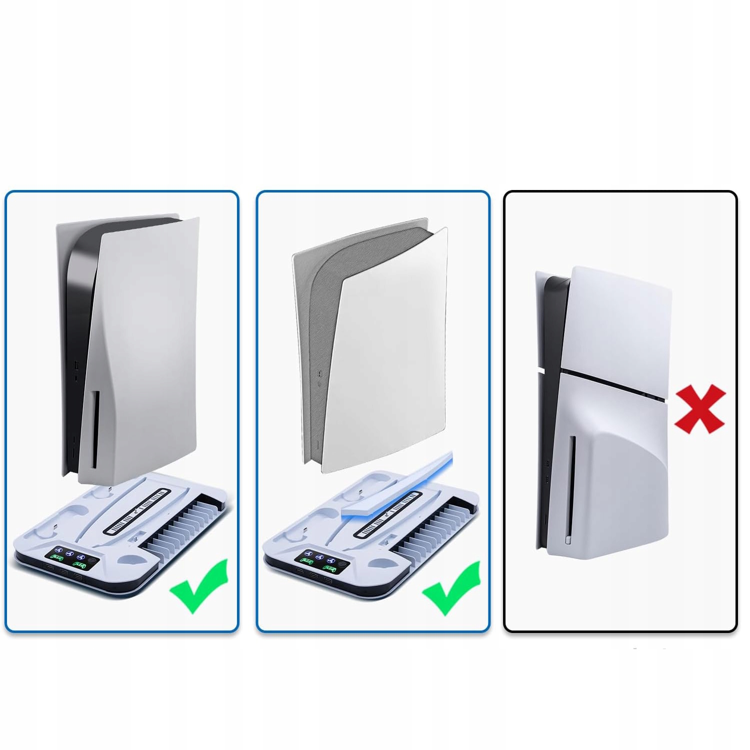 🎮 【Специально адаптировано для PS5 UHD/Digital Edition】: Это встроенное охлаждающее крепление специально разработано для игровых консолей PS5. UHD и цифровое издание. Прочная конструкция и точная посадка обеспечивают надежную устойчивость консоли, а встроенный лоток для дисков поддерживает порядок в игровом пространстве.