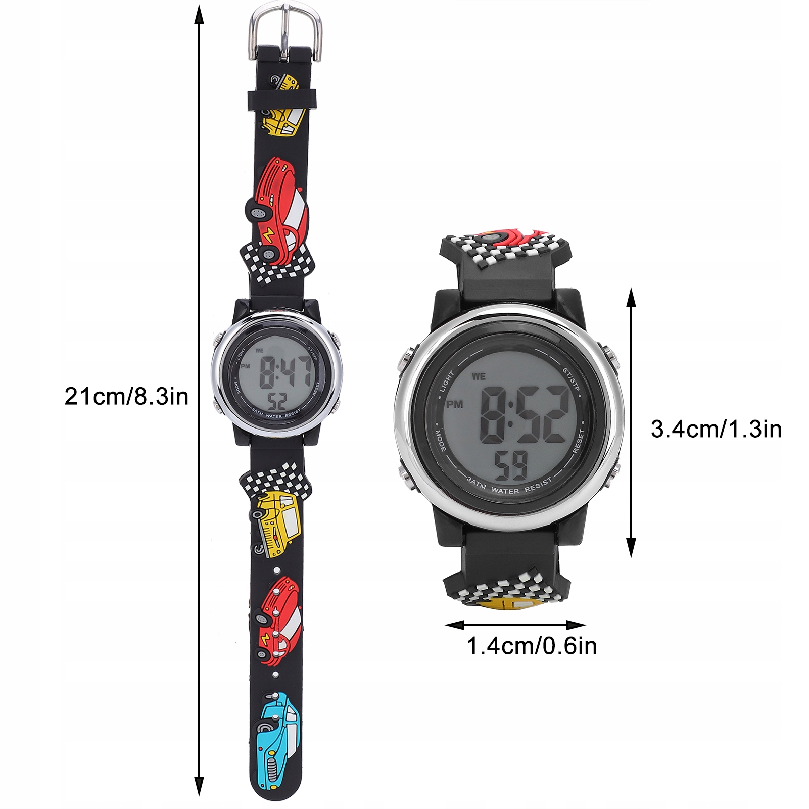 1. Зеркало высокой четкости, хорошая светопроницаемость, легко проверить время. 2,3 АТМ водонепроницаем для плавания, мытья рук, дайвинга и других жизненных потребностей. 3. 3D-мультфильм более трехмерный и красивый. 4. Ремешок для часов экологически чистый, антиаллергенный, легко чистится и стирается, устойчив к холоду и плесени. 5. Пряжка из нержавеющей стали, устойчивость к коррозии и аллергии, длительный срок службы.