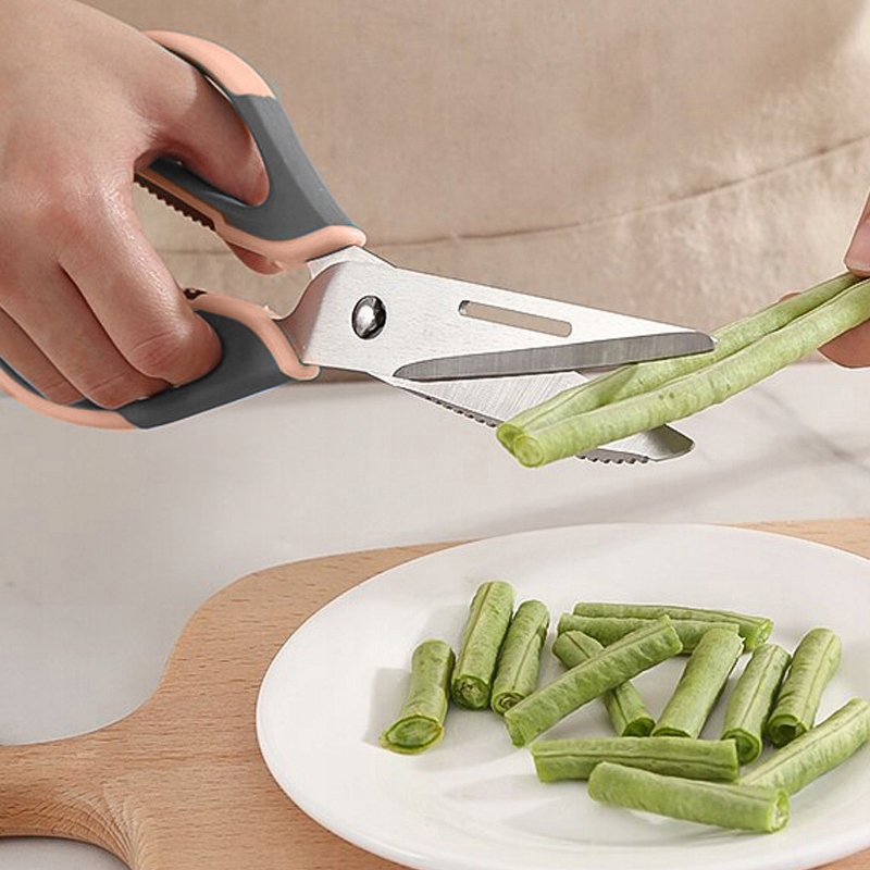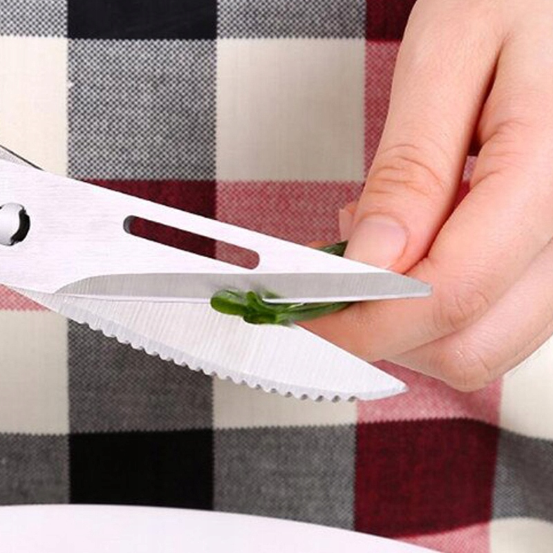 Многофункциональные ножницы являются отличным инструментом как для любителей, так и для специалистов по приготовлению пищи. Они будут работать в вашем доме благодаря их функциональности. У них нет ручек для неразделимости, поэтому вы не выпадаете из рук при резке. Инструмент может быть использован для резки мяса, фруктов, овощей, открывающихся бутылок или банок, очистки рыбы, расщепления орехов