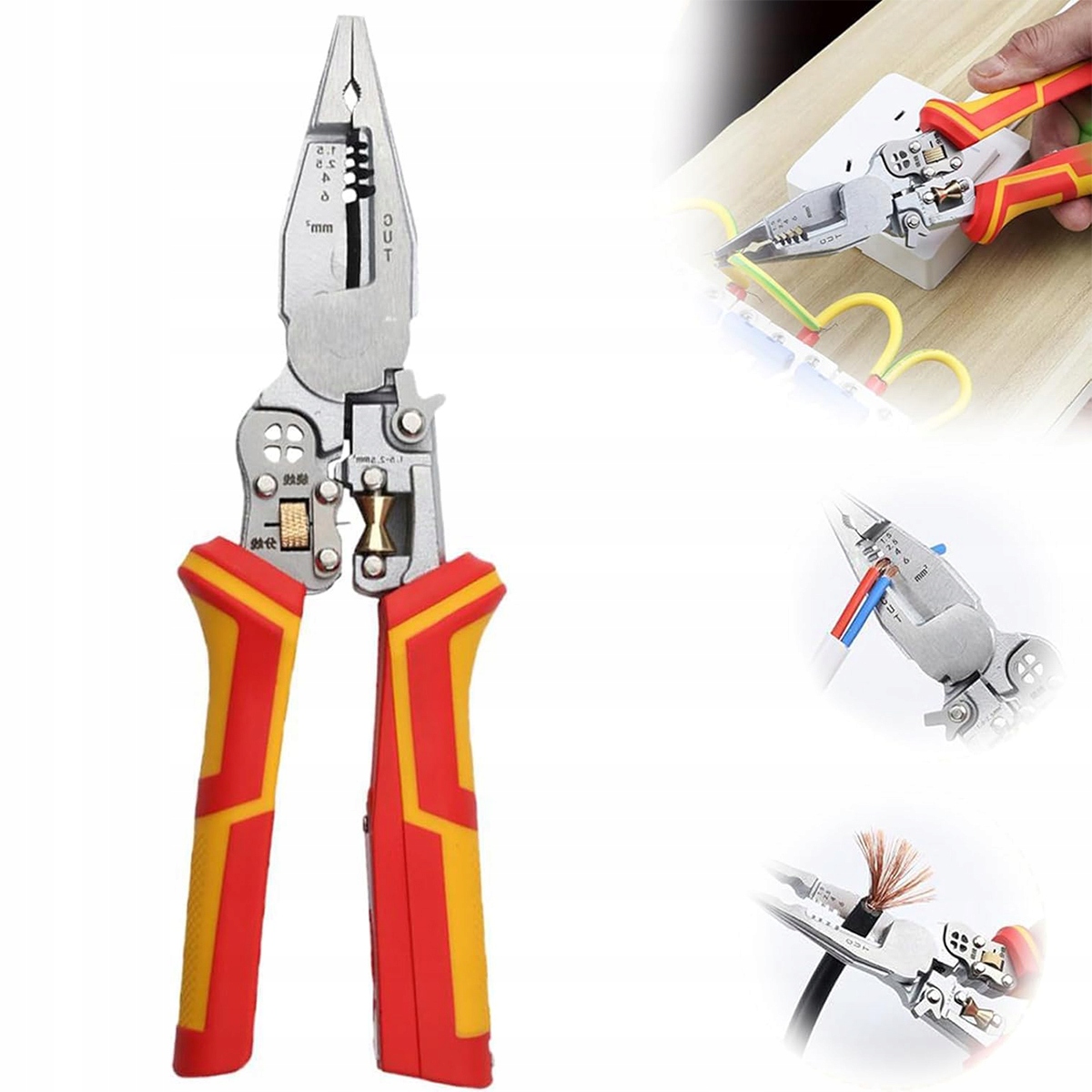【Увеличенная конструкция с четырьмя отверстиями для обмотки】Клещи имеют увеличенную конструкцию с четырьмя отверстиями для обмотки, поэтому вы можете легко и безопасно направлять и наматывать провода. Это гарантирует точность электромонтажных работ, особенно достижение прочных и чистых соединений проводов.