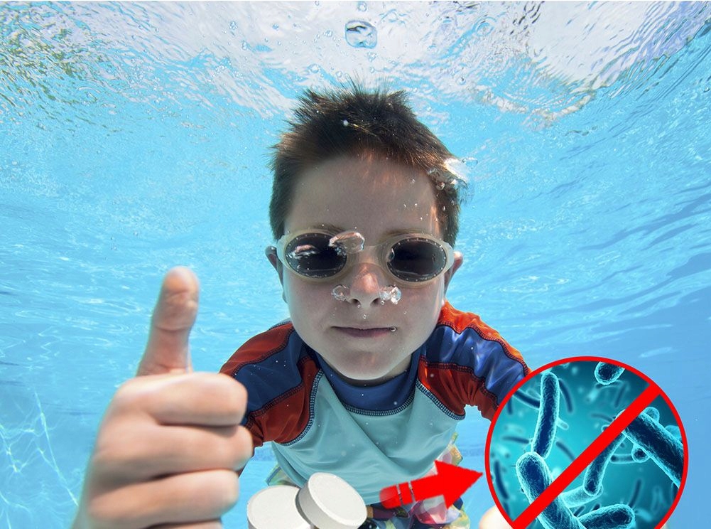 Дозировать хлор в бассейн еще никогда не было так просто – дозируя 10 таблеток по 20 г на 20 м3 воды, вы поддержите необходимый уровень хлора и добьетесь описанного выше многофункционального эффекта. Таблетки следует помещать в скиммер или буй, поскольку, если их бросить прямо в воду, они могут обесцветить дно бассейна. Таблетка растворяется примерно за 5-7 дней в зависимости от температуры воды и уровня хлора в бассейне. Большое количество людей, пользующихся бассейном, и яркий солнечный свет приводят к более быстрому потреблению хлора в воде бассейна. Препарат обеспечивает быстрое достижение концентрации активного хлора на уровне, обеспечивающем эффективное уничтожение микроорганизмов, в том числе бактерий и болезнетворных грибов. Он также идеально подходит для хлорирования очень жесткой воды в бассейне. Это делает пользование бассейном более безопасным и не подвергает вас риску микробных инфекций. При этом вода становится более свежей и производит более приятное впечатление.