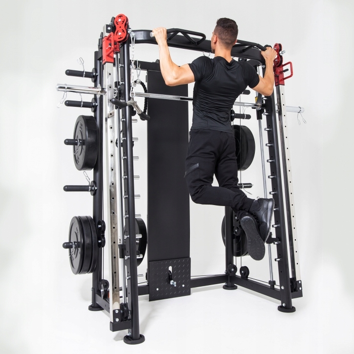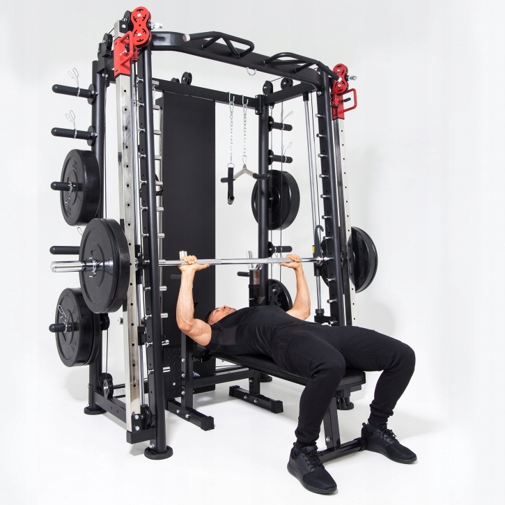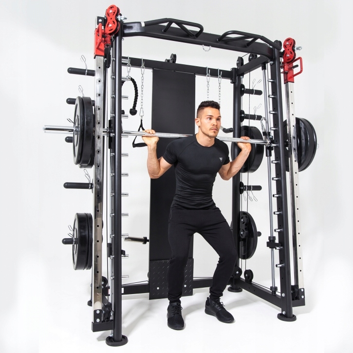 Тренажер Смита GORILLA SPORTS благодаря своей стальной конструкции обеспечивает устойчивость и безопасность во время тренировок.
