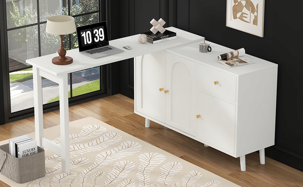 Многофункциональный стол и 2 -At Shideboard - 360 ° вращающийся, 3 двери, 1 ящик - Элегантный компьютерный стол, угловой стол, туалетный столик, стол, буфет
