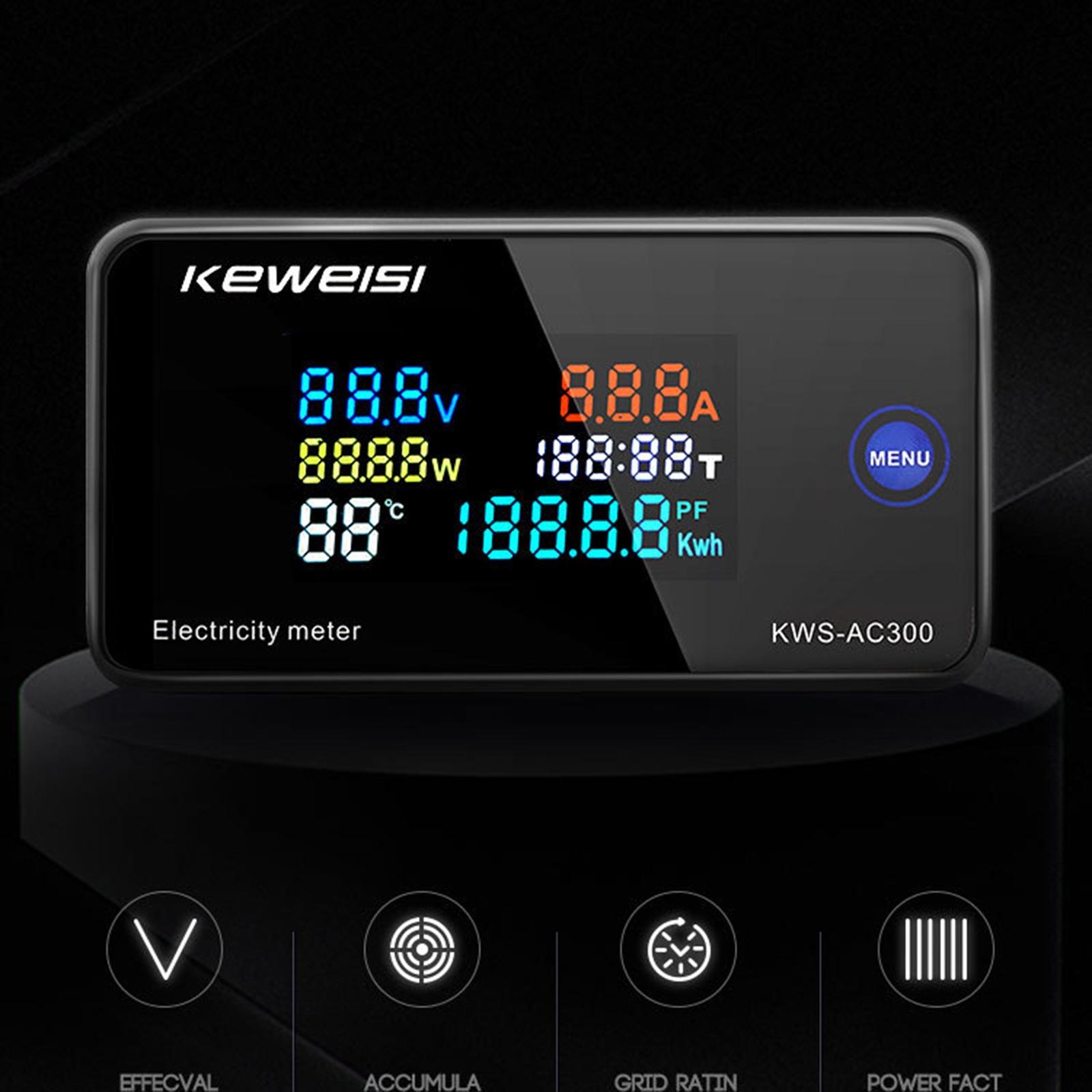 Электрический счетчик 6 в 1. Прозрачный и большой экран может отображать напряжение, ток, активная мощность, кВтч, время и температура одновременно