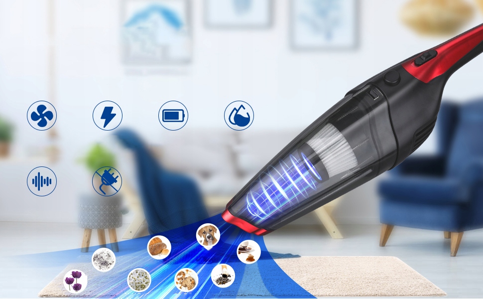 ✔️【Портативный беспроводной дизайн и низкий уровень шума】: Ручной пылесос может чистить лестницу, кухню, машину. или труднодоступные углы без шнура питания. Портативный дизайн упрощает использование. Он также работает тихо, создавая шум менее 78 децибел во время использования. Она не побеспокоит даже спящих детей или домашних животных.